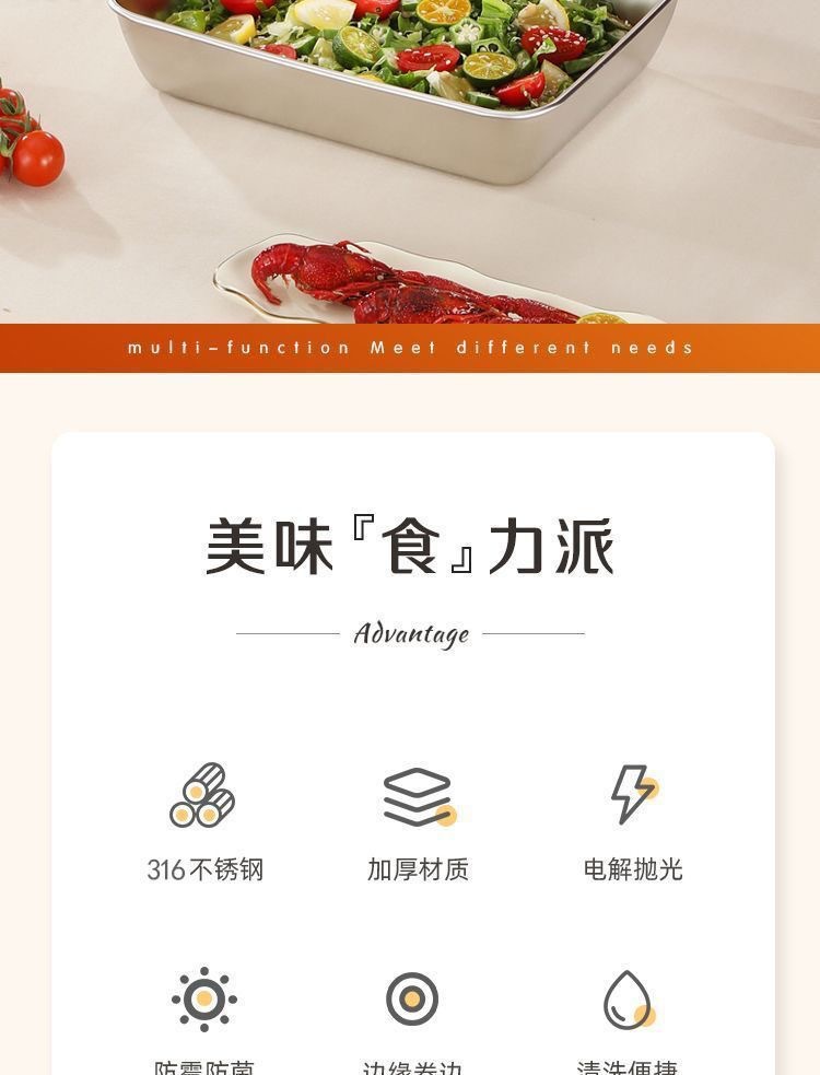 不锈钢毛巾盘备菜盒冰箱保鲜盒子火锅配菜盒长方形户外料理野餐盒
