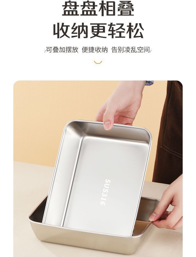 角皿ステンレス皿野菜皿新鮮保持家庭用深皿長方形トレイタオル皿バーベキュー皿ティラミス