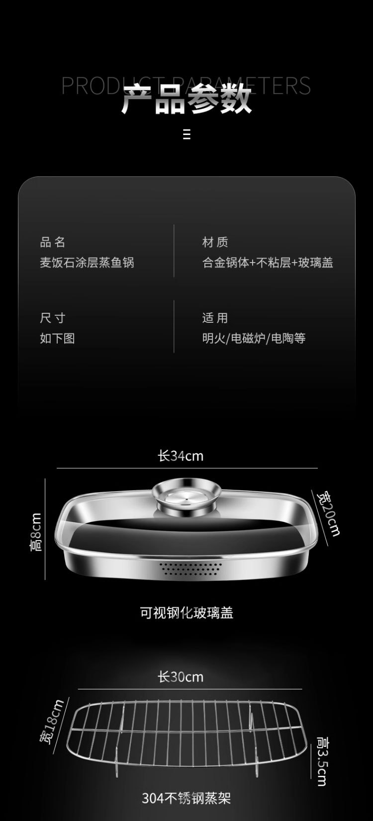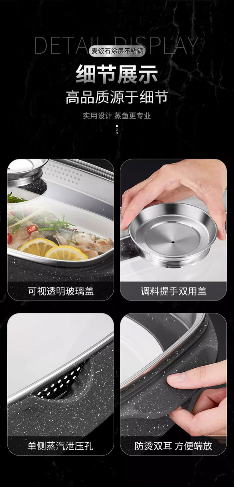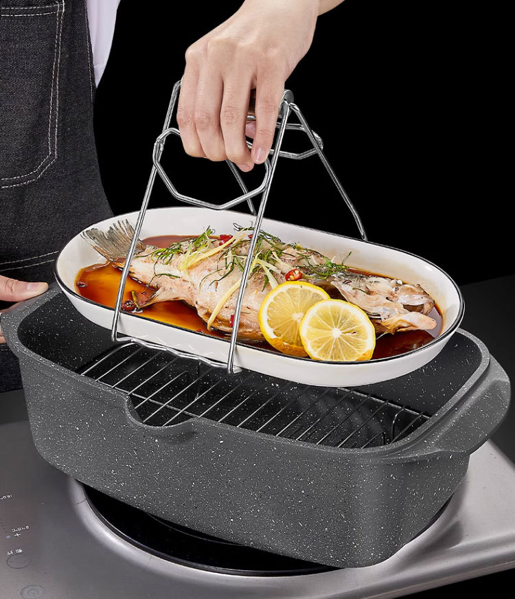 蒸し魚鍋家庭用麦飯石は長方形の大型多機能焼き魚蒸し魚鍋ガス電磁ストーブにくっつかない