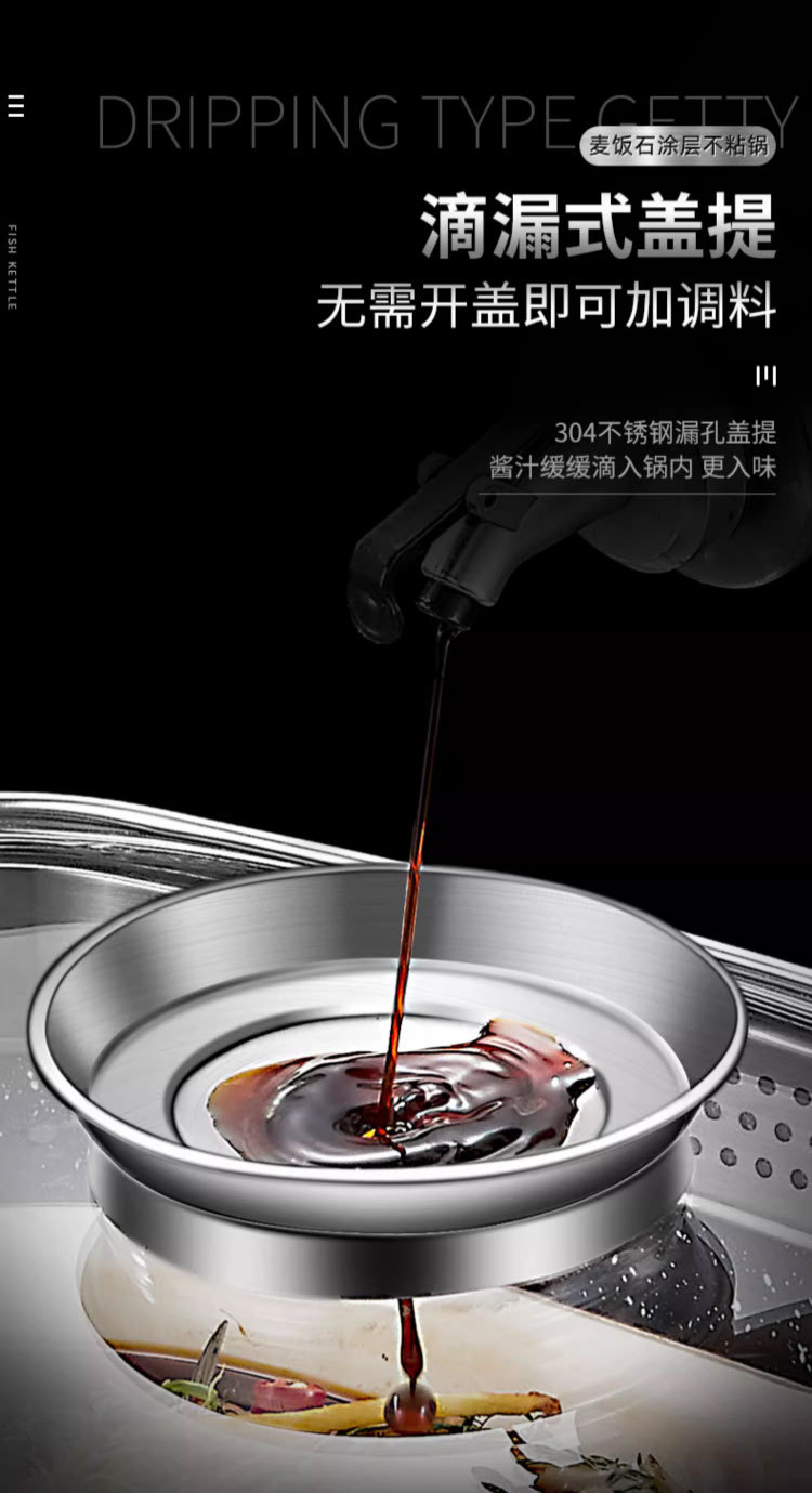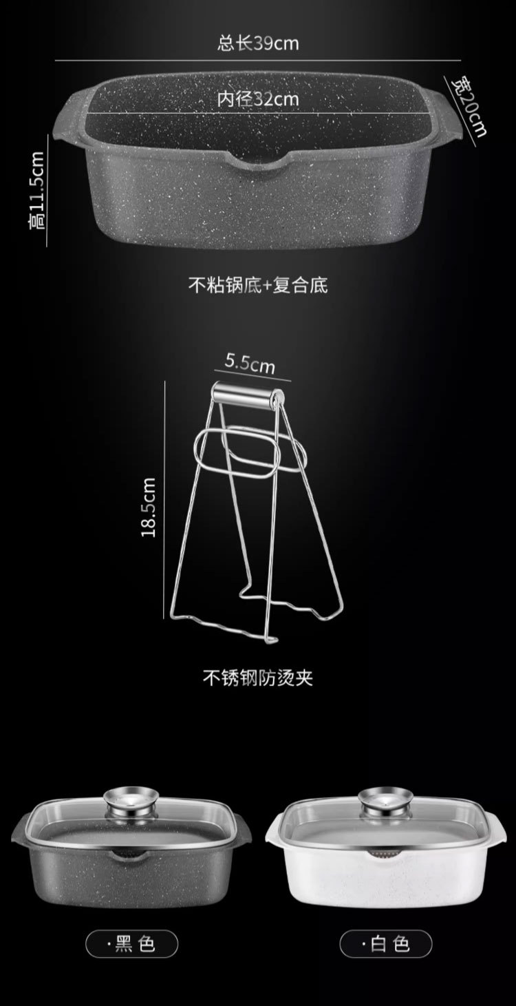 クロスボーダー焼きしゃぶしゃぶ一体鍋楕円蒸し鍋大サイズ煮込みガスコンロ電磁オーブン焼き魚鍋専用家