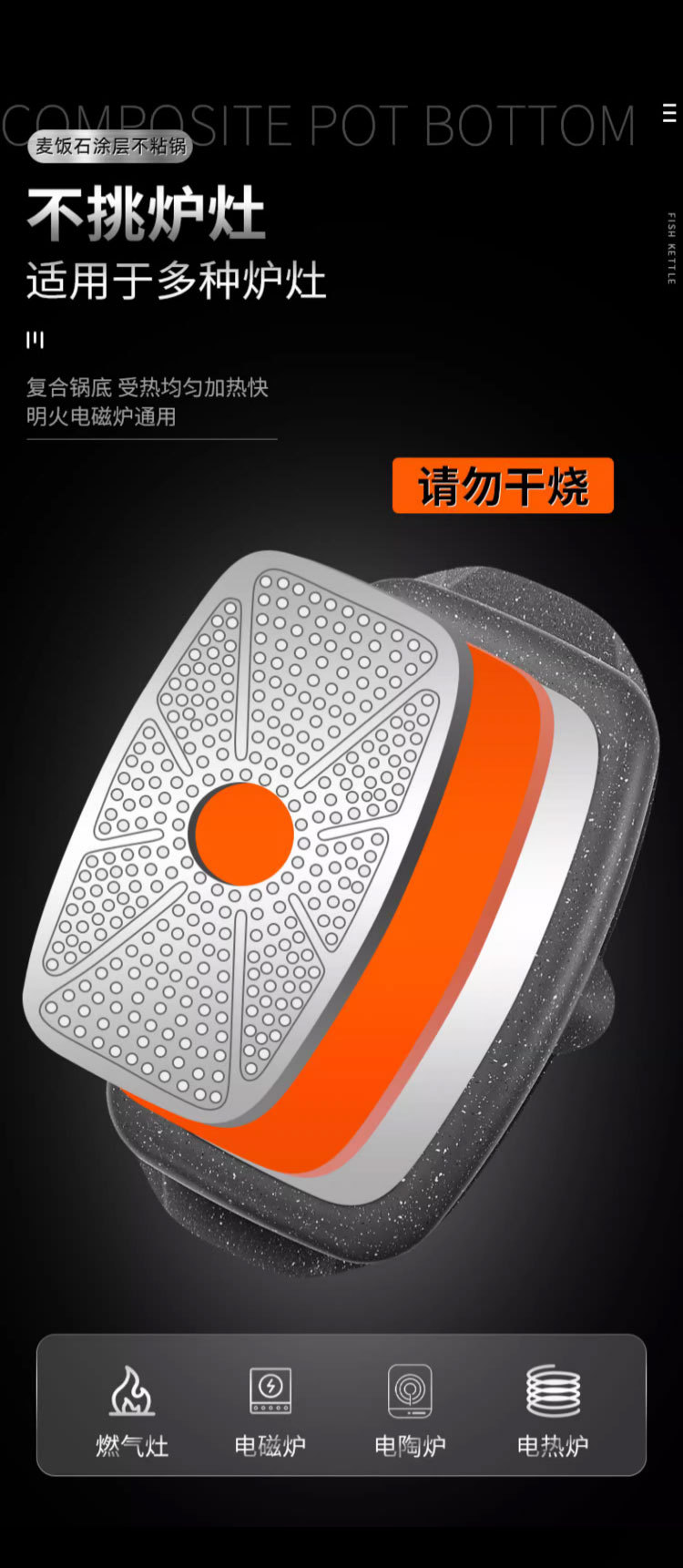 焼き魚鍋長方形家庭用増粘電磁調理器ガスストーブユニバーサル蒸し魚特別な医療石揚げ魚鍋商業