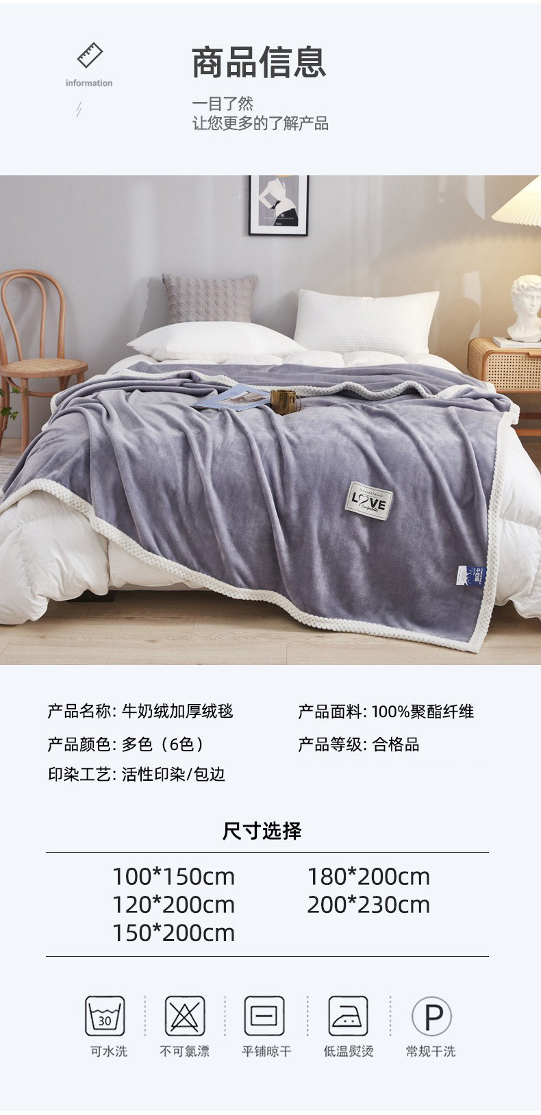 ブランケット無地ミルクベルベットブランケット厚く暖かいギフトブランケットエアコンブランケットクロスボーダーファライベルベットオフィス昼寝ブランケット