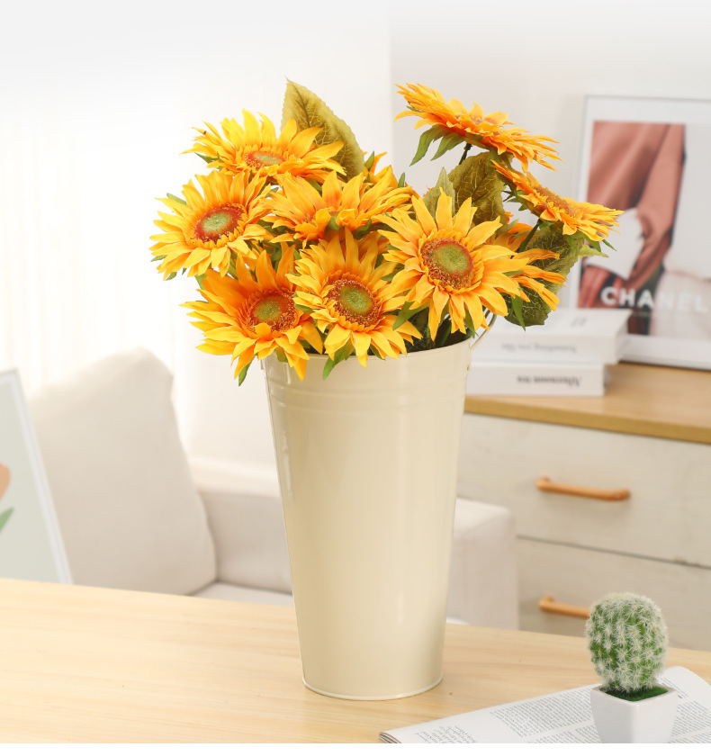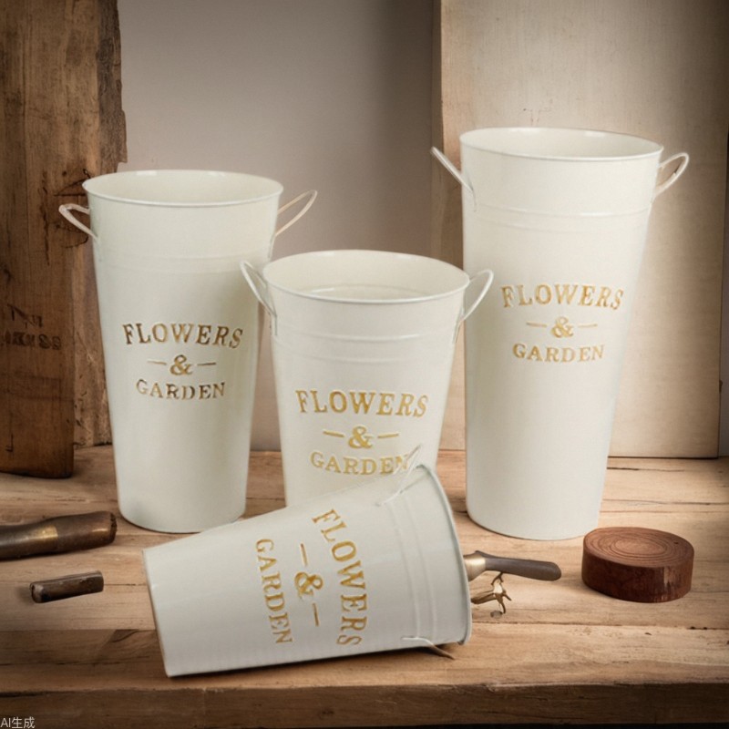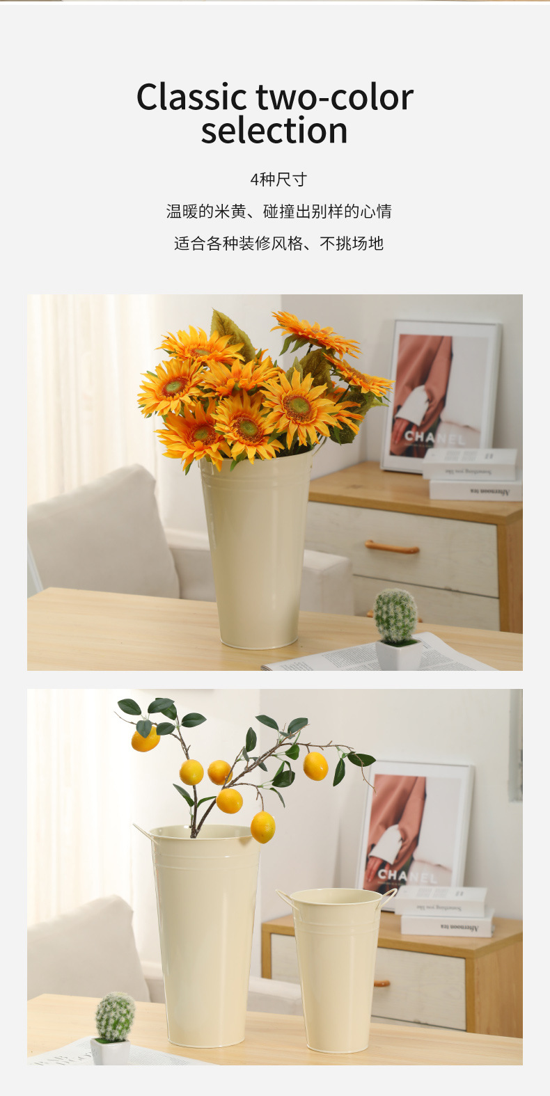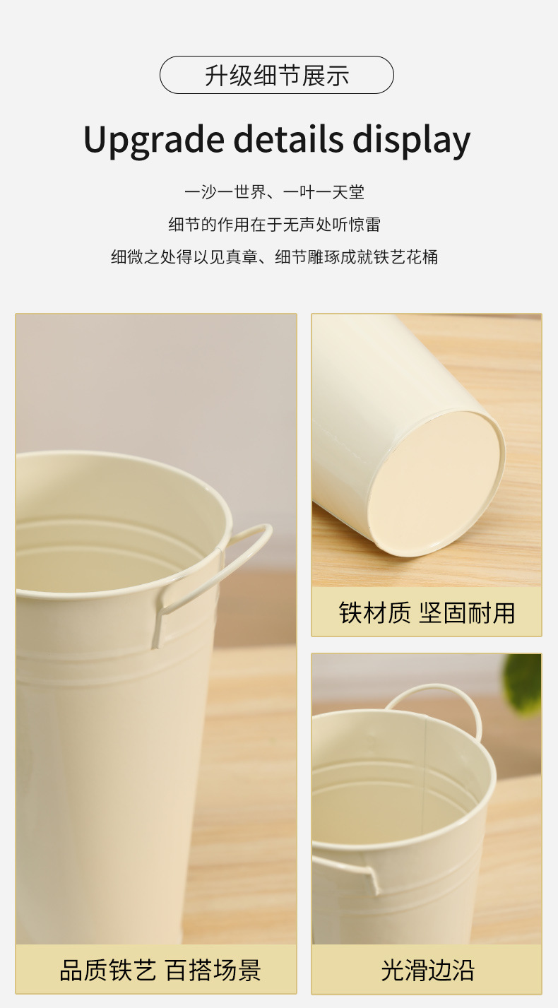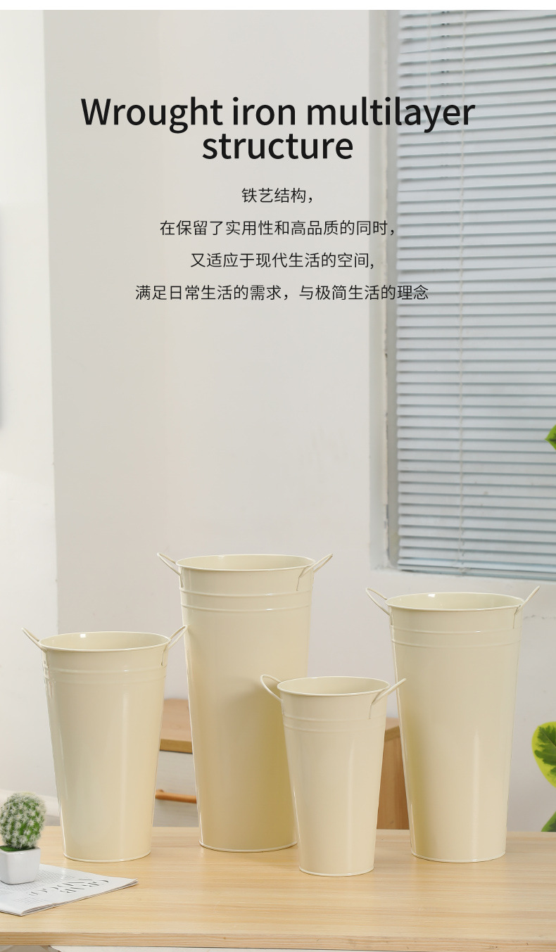 跨境供应米白铁艺插花桶花店家用醒花桶铁皮鲜花桶家居装饰干花桶