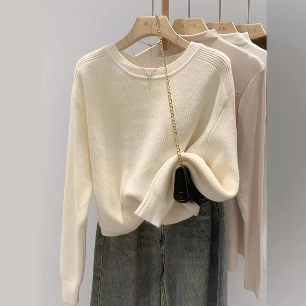 日系の柔らかいモチモチの丸首のセーターの女性の2024春の秋冬の短いタイプのニットの底のシャツの怠惰なプルオーバーの中で上着を掛けます。