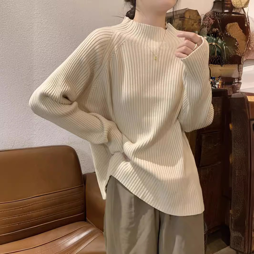 2023秋冬の韓国版のゆったりした百合半高襟の中に厚いニットの底のシャツの女性の底のセーターを掛けます。