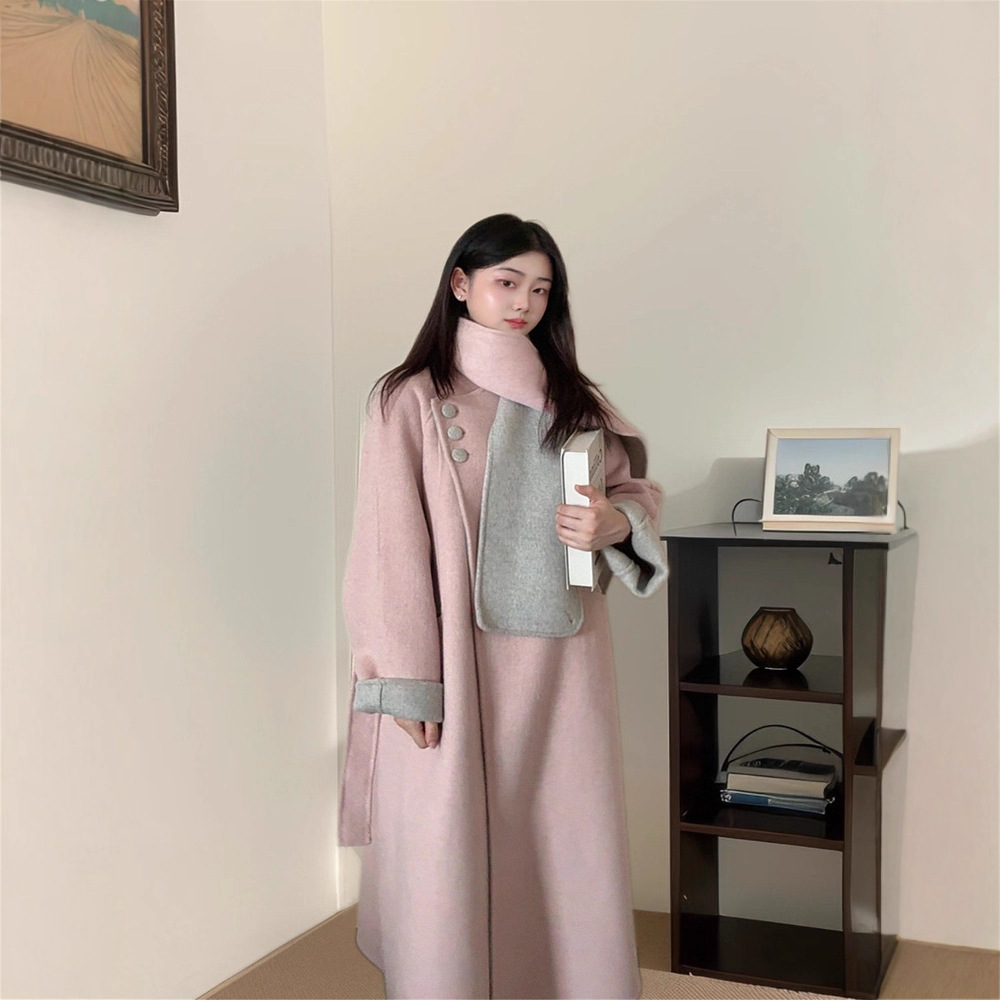 斯卡露2025秋冬新款双面羊绒大衣女中长款宽松显瘦羊毛呢外套