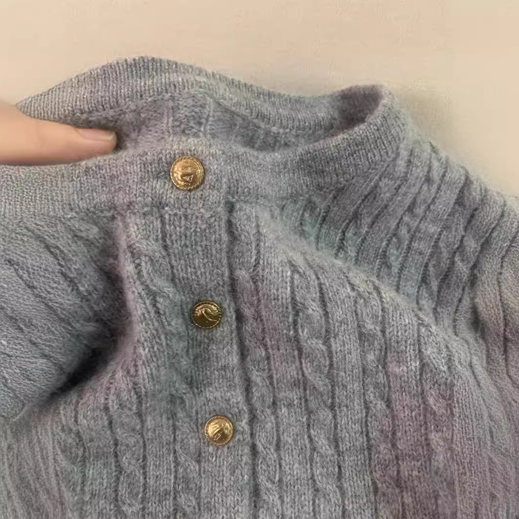 2025韩系温柔风纯色圆领毛衣外套女秋冬季宽松软糯奶FUFU针织开衫
