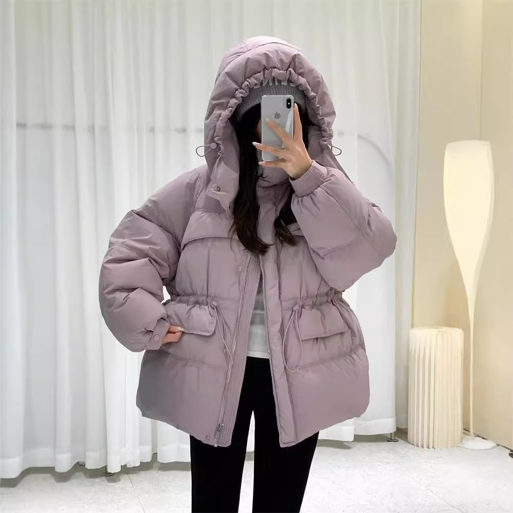 2025年冬季新款白鸭绒短款宽松泡芙女连帽羽绒服韩版慵懒风小个子