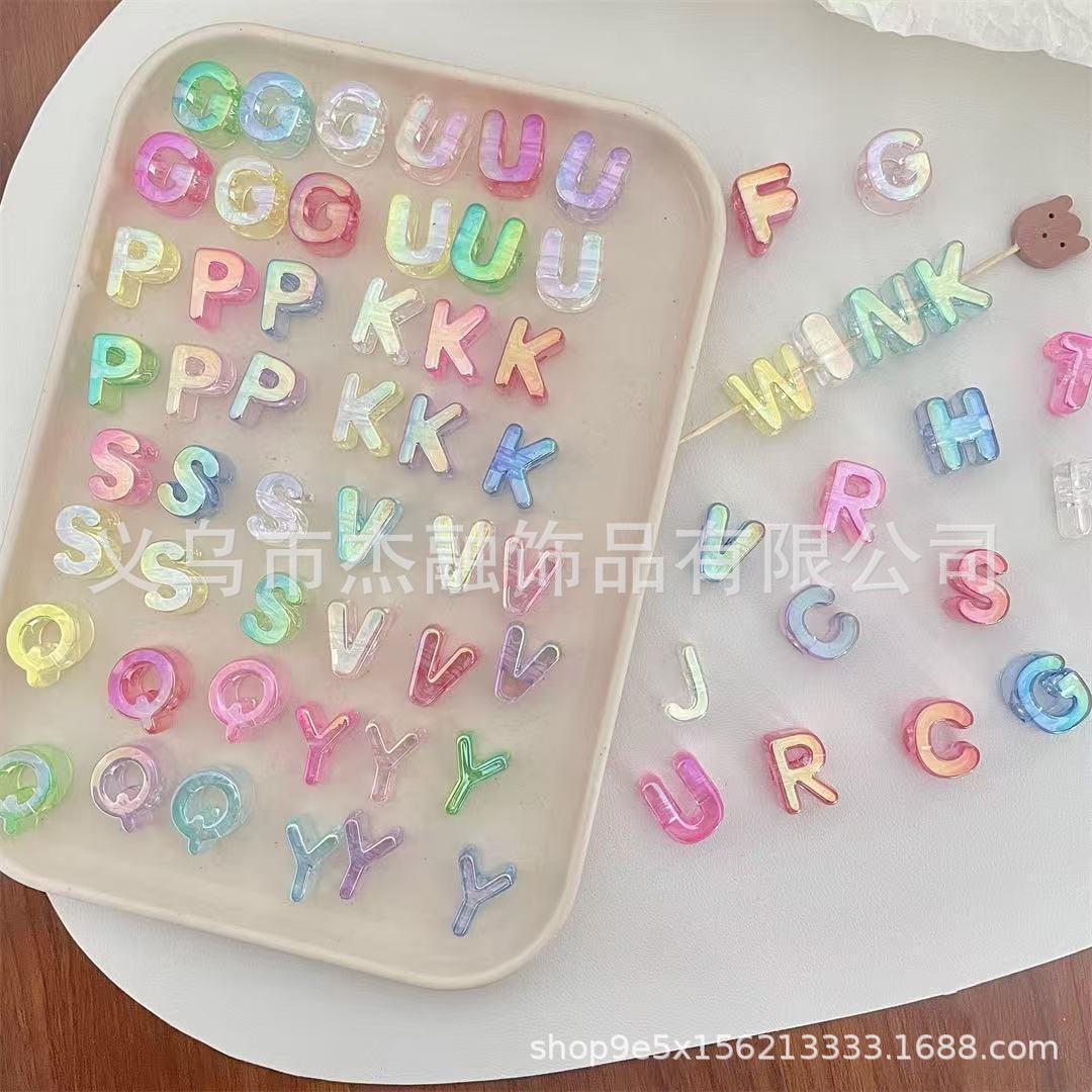 亚克力UV高透镀彩大孔字母通孔珠手机链串珠diy手工挂件饰品配件