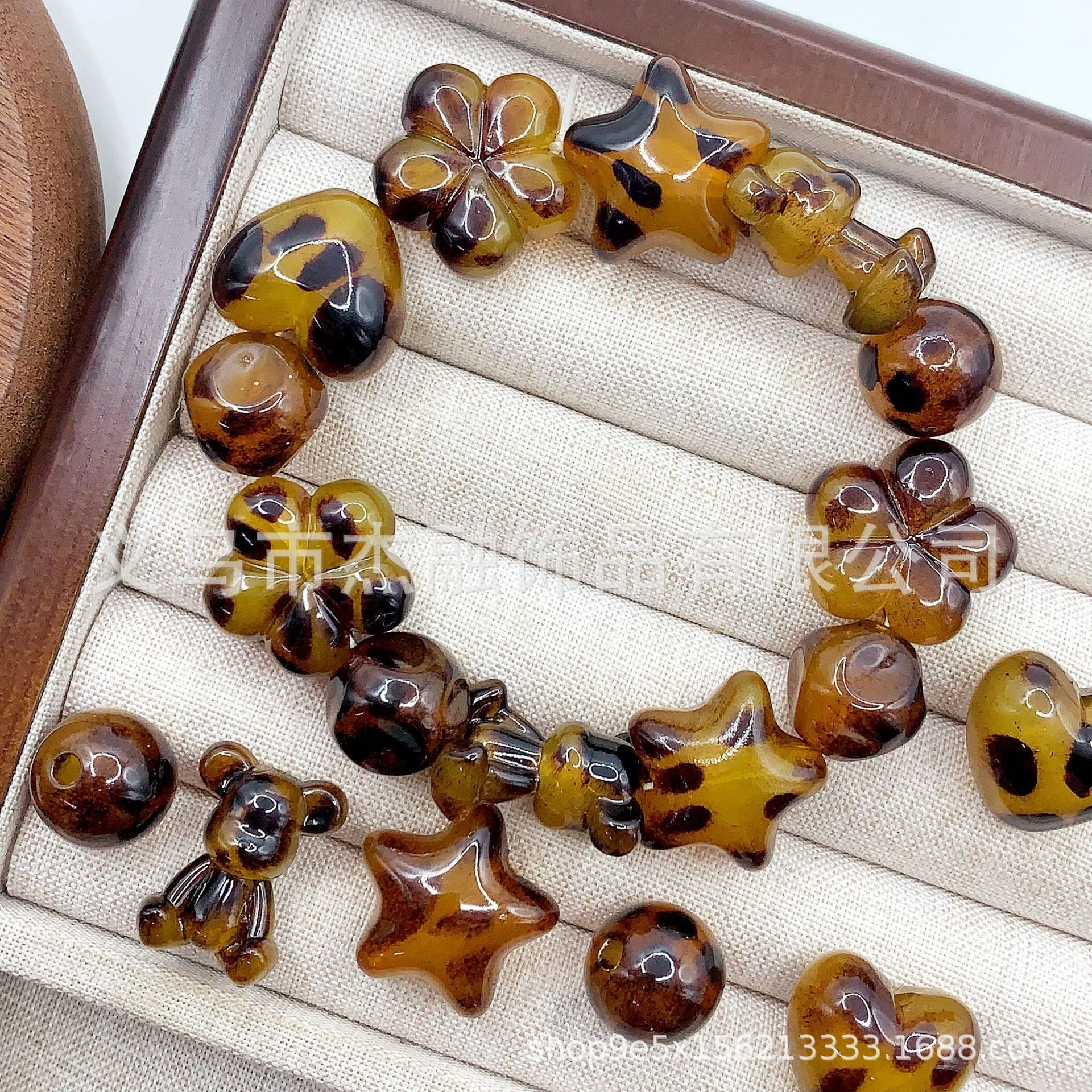 豹纹小熊直孔珠蝴蝶结散珠爱心串珠星星饰品钥匙扣钥匙链配件批发