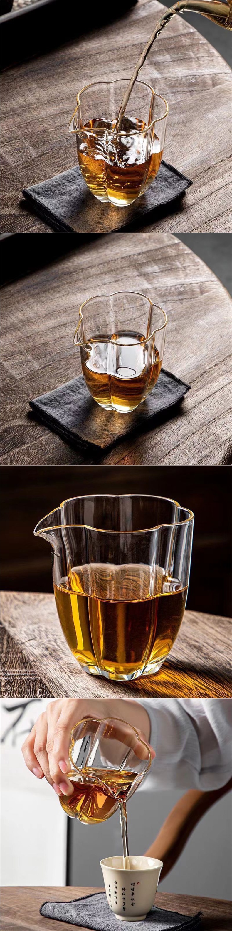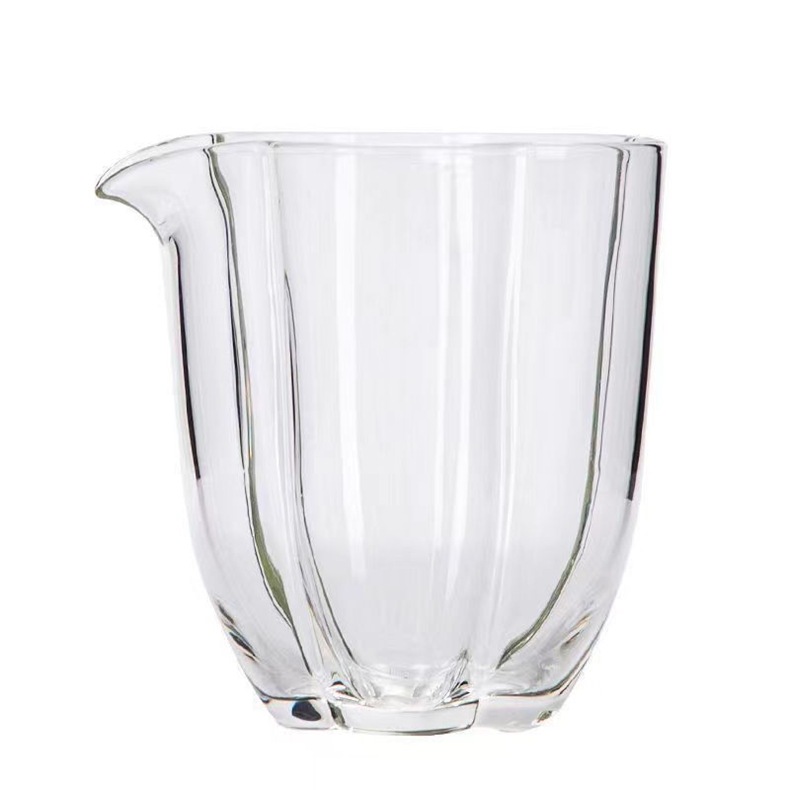 日式花瓣玻璃公道杯耐高温家用茶海分茶器功夫茶具配件透明公杯
