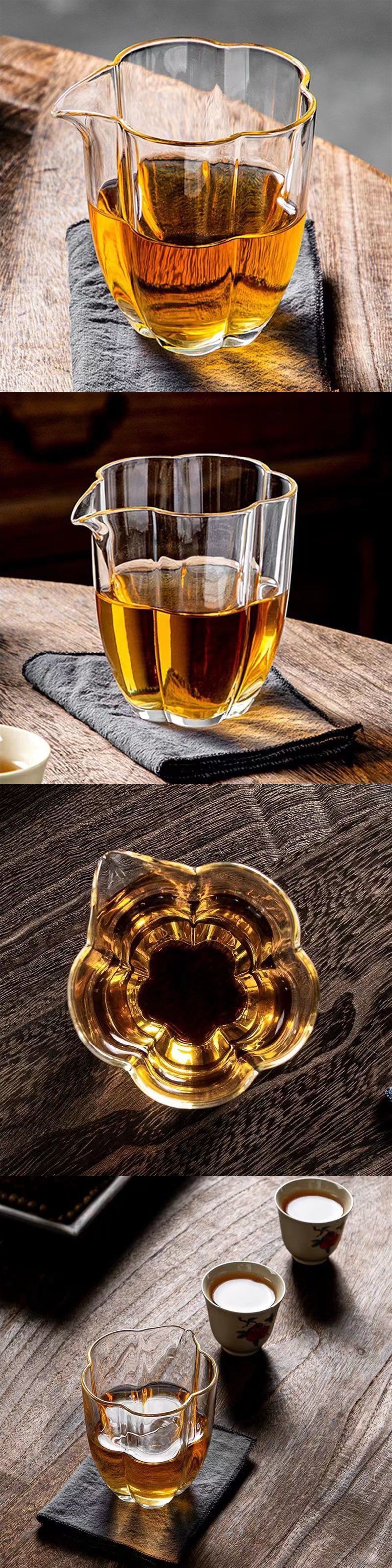 加厚玻璃茶具梅花公道杯玻璃分茶器手工日式高端茶海耐热花瓣公杯