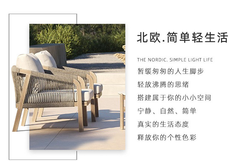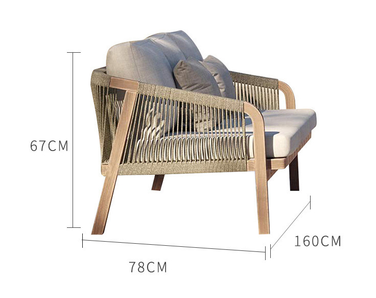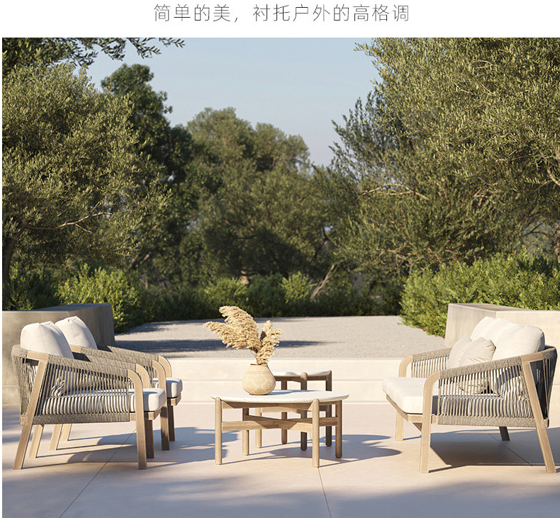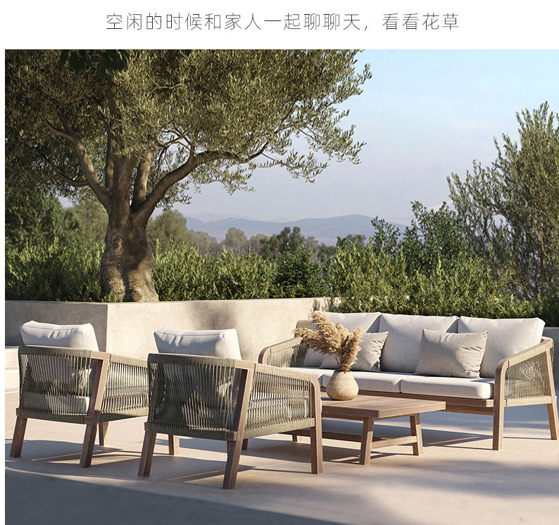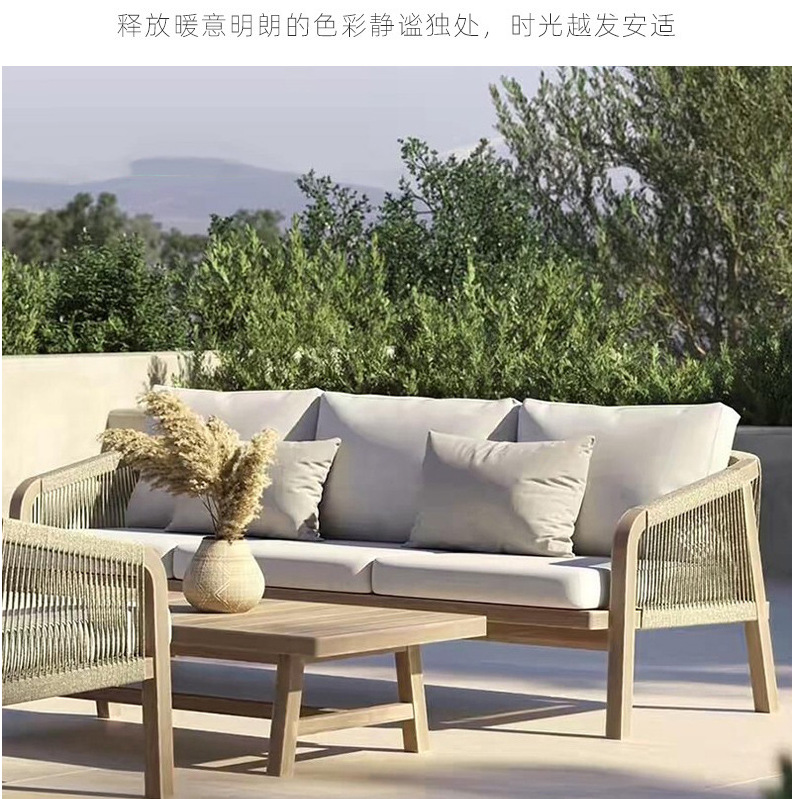 北欧屋外ハイエンドチークソファテラスガーデン屋外防腐無垢材ソファレジャー家具ホテルバルコニー