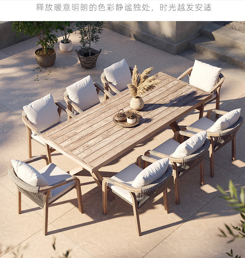 カスタマイズされた屋外テラスレジャー家具ヴィラ中庭デザイン籐椅子ホテルガーデンハイエンドチークダイニングテーブルと椅子