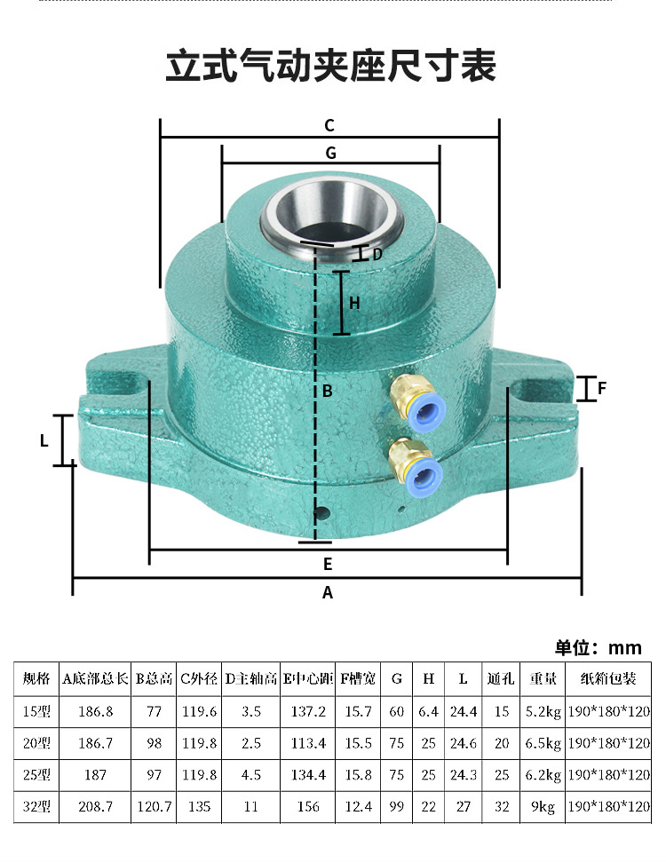 15型、20型、25型、32型、水平分度、垂直空気圧コレット、計器旋盤クランプ、クランプ、自動クランプ