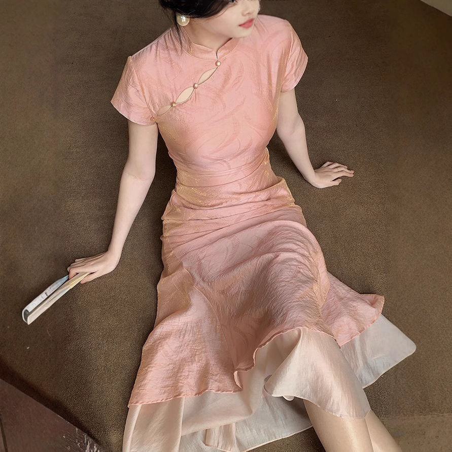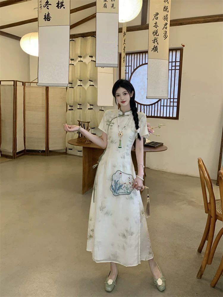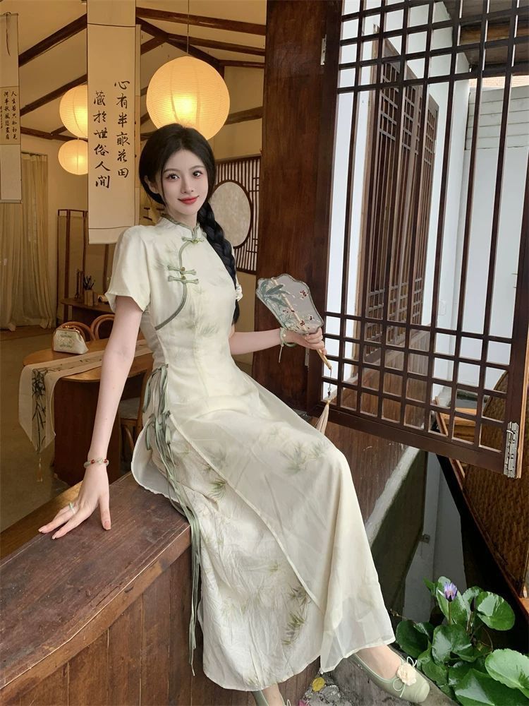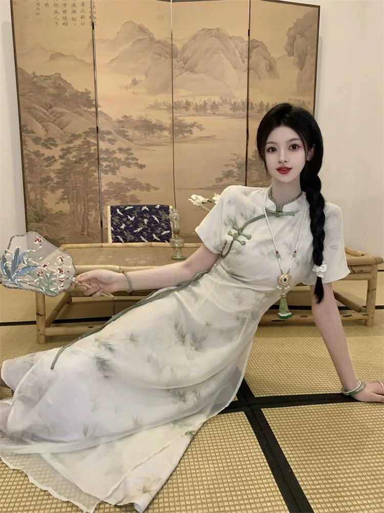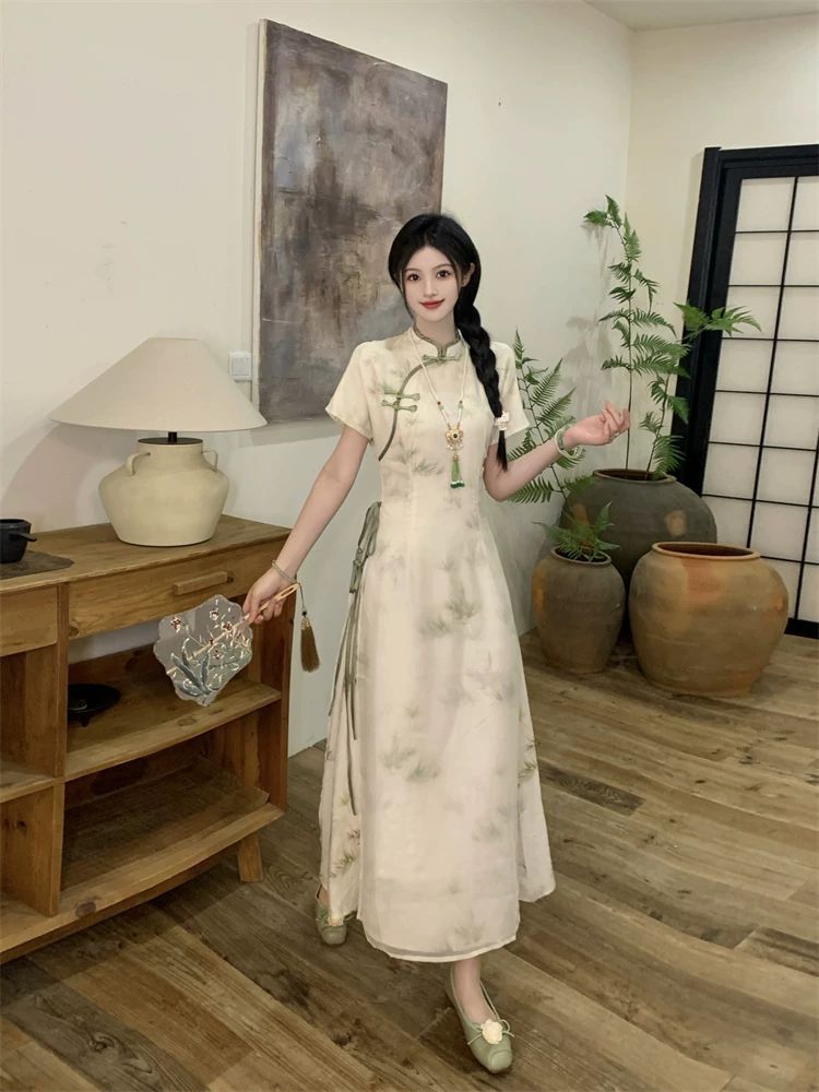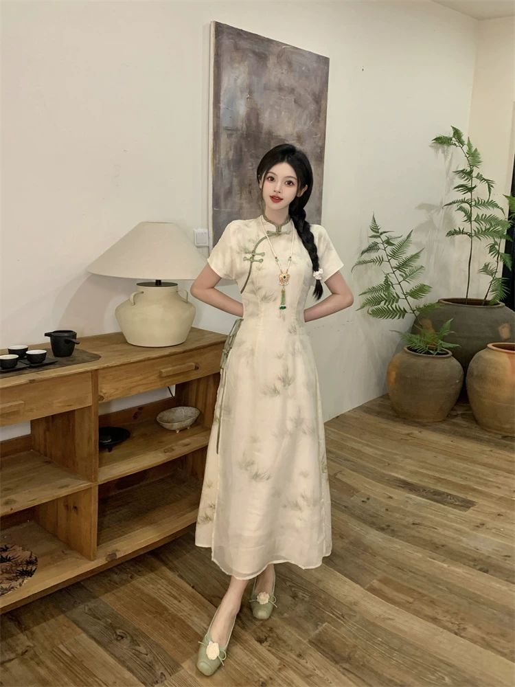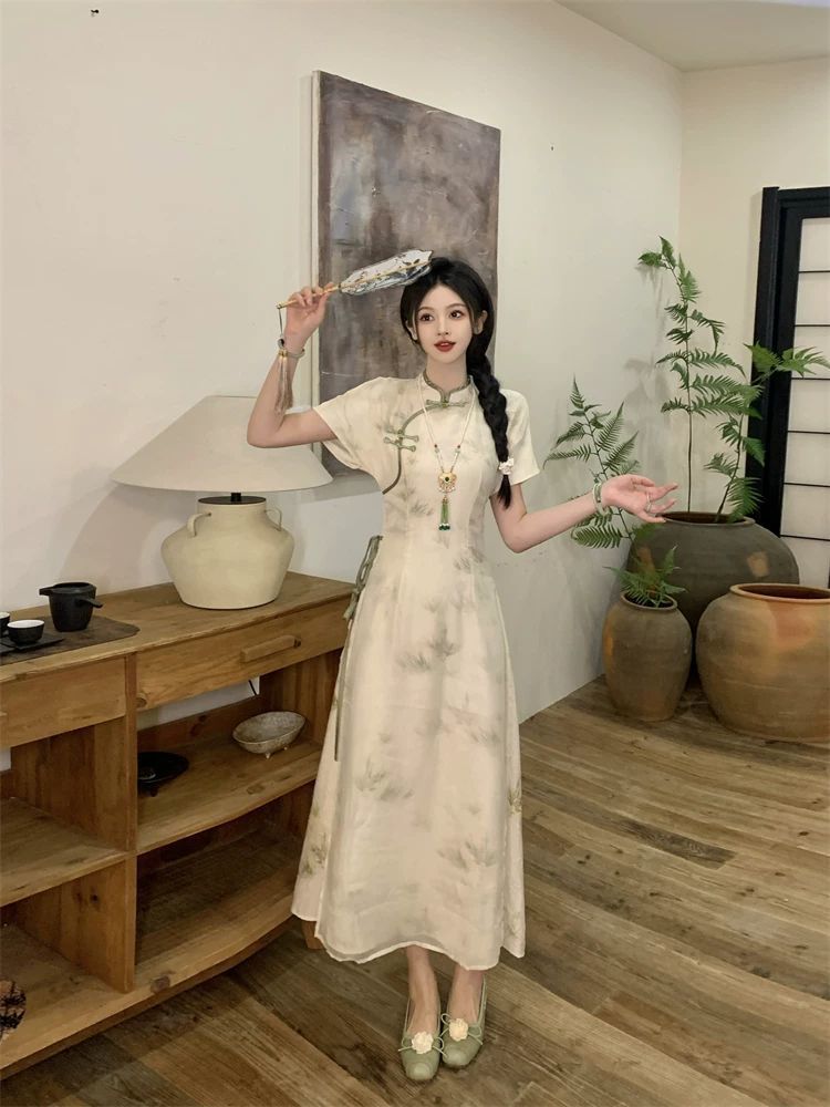 婚約デイリーチャイナドレス中国風レトロ改良ドレス女性の夏のプリント新中国風 2025 新しいスタイル