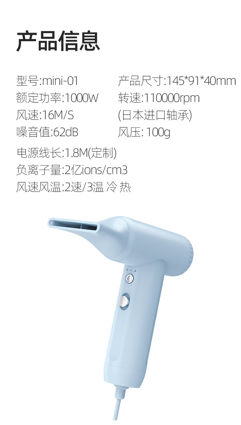跨境爆款mini无刷吹风筒便携旅行迷你电吹风高速负离子吹风机定制