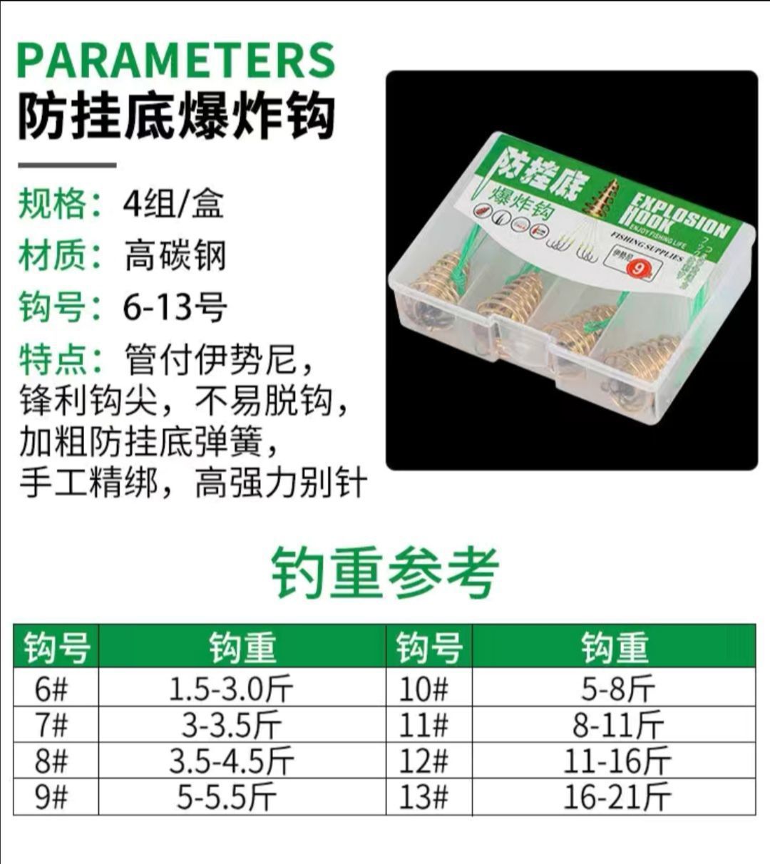 黒狼爆発フック巻き止め四組箱入り伊勢尼爆弾フック掛け防止底フック漁具製品卸売り釣り