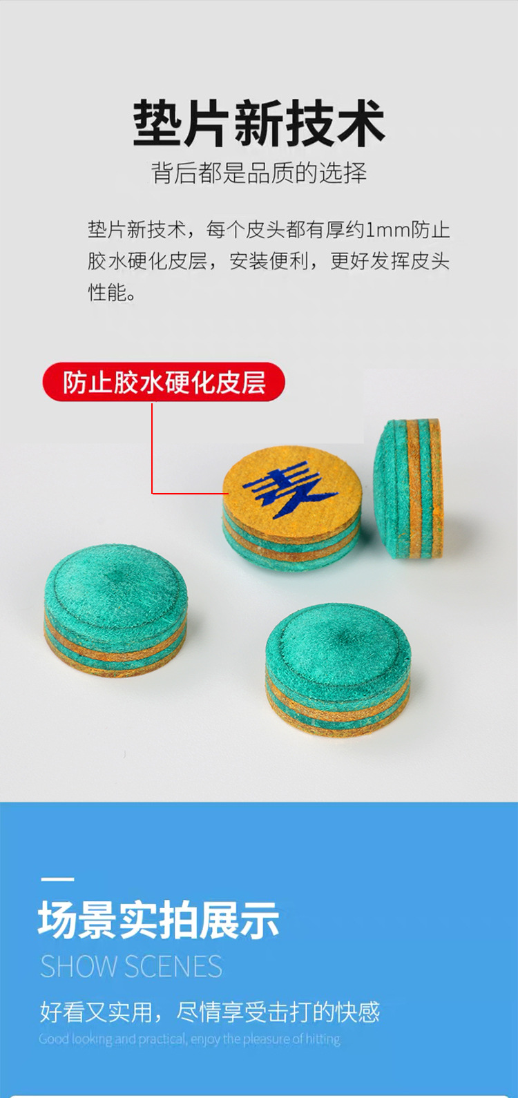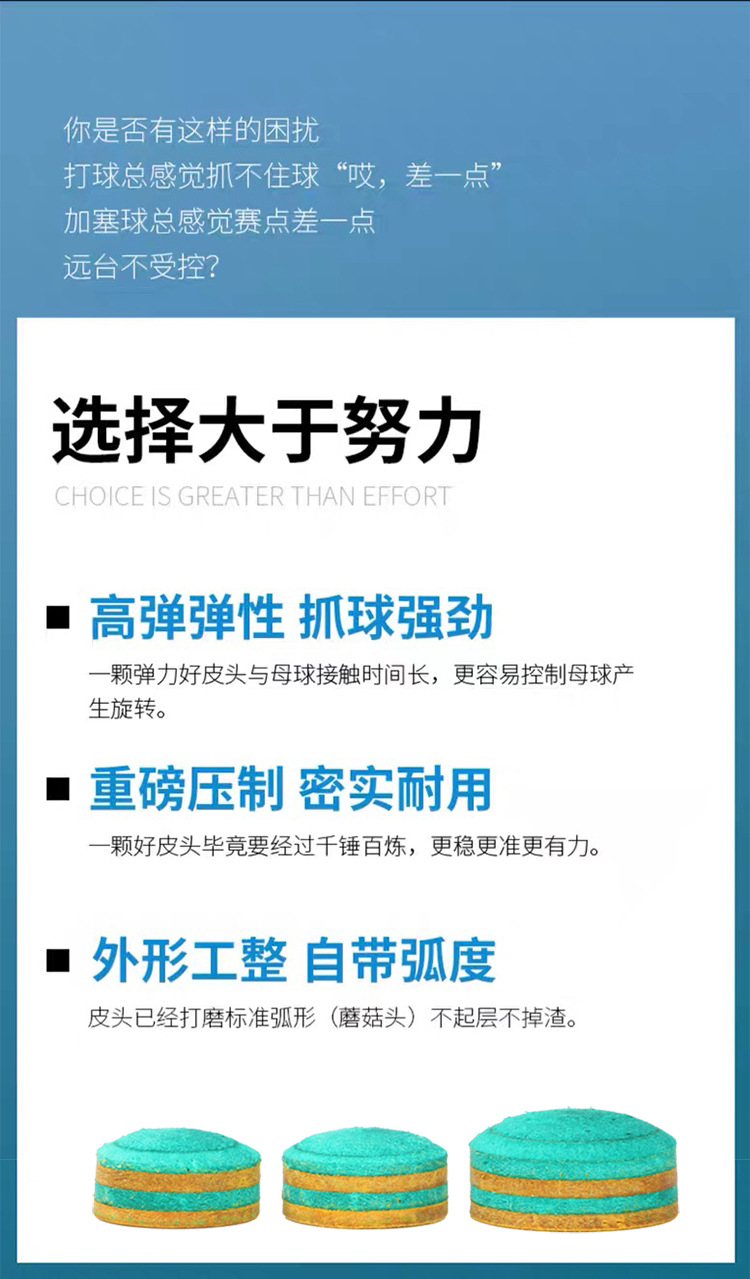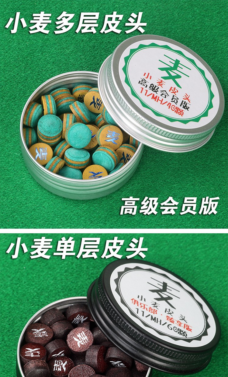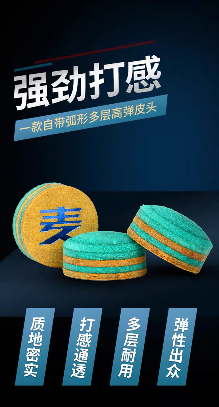 小麦彩虹皮头黑科技台球杆头斯诺克九球多层垫片黑8波茨黑八枪头