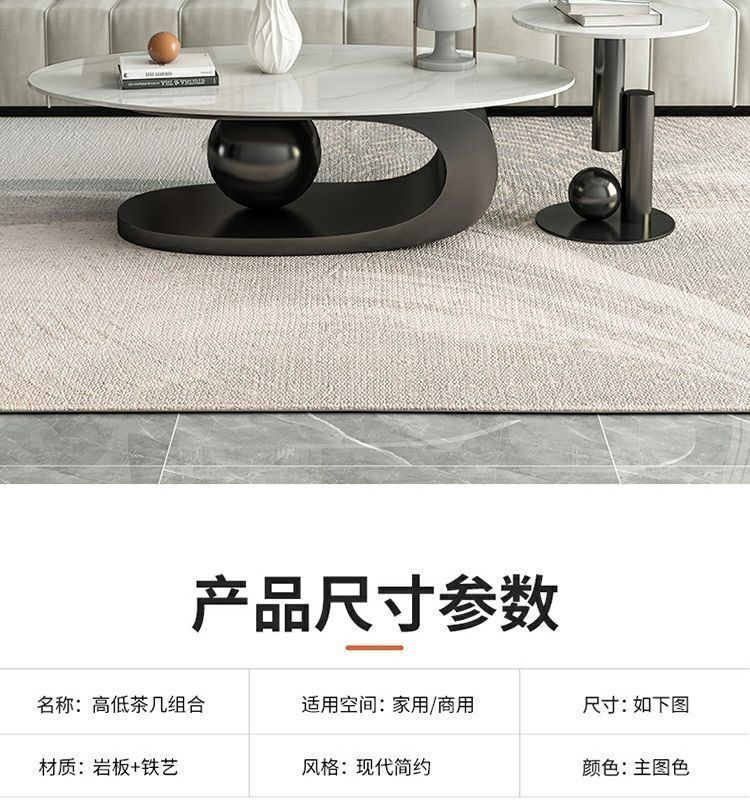 轻奢小户型岩板椭圆形茶几出租房用茶几家用客厅爆款桌子网红简易
