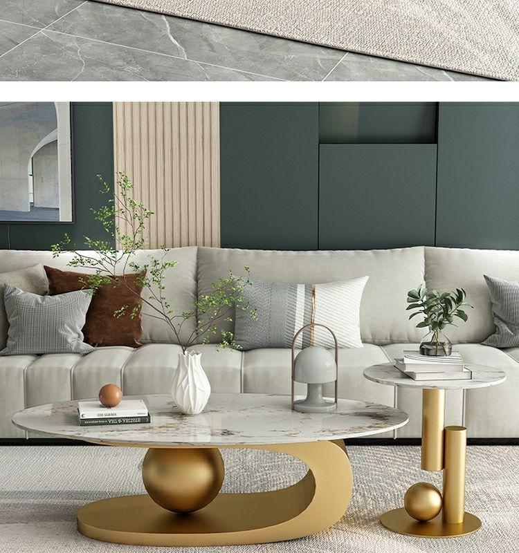 イタリア製スレートコーヒーテーブル、リビングルーム、軽くて豪華な小さな楕円形のコーヒーテーブル、賃貸住宅用の人気のインターネットセレブティーテーブル