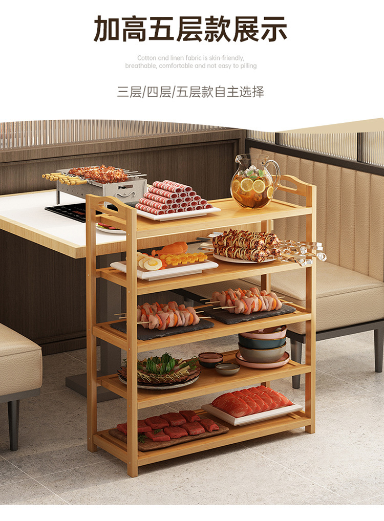 鍋レストラン用野菜ラック、業務用レストラン用野菜プレート用キッチンラック、無垢材多層収納ラック