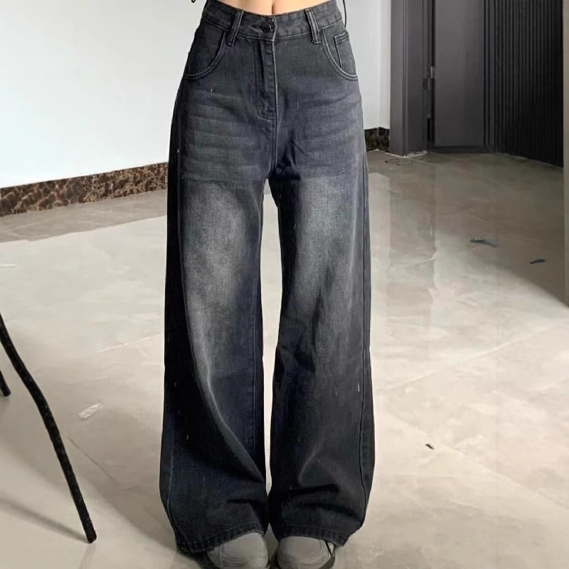 アメリカンレトロな女性用小柄ジーンズ、秋冬の新しいスタイル、ハイウエスト、ルーズ、ワイドレッグ、フロアレングス、ストレートレッグ、スリムパンツ、トレンディ