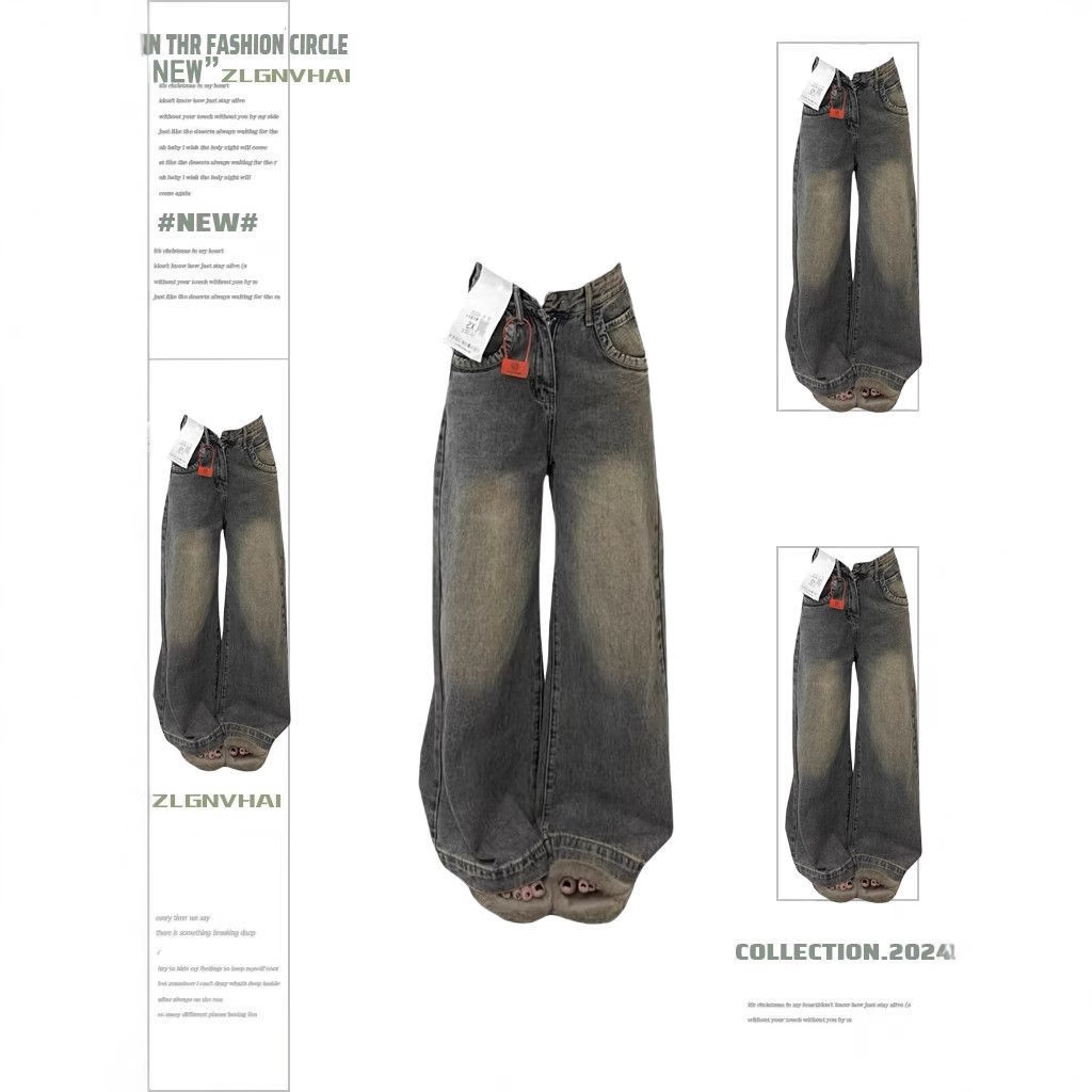 アメリカン迷彩ジーンズレディースハイウエストルーズホットガールストレートワークウェアワイドレッグパンツトレンディな2025春の新スタイル