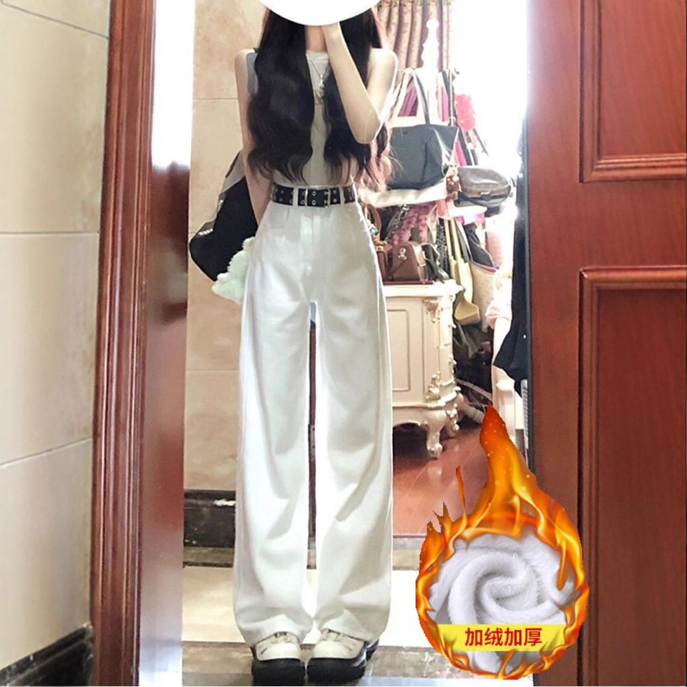 加绒加厚白色阔腿宽松牛仔裤女秋冬新款高腰显瘦百搭直筒裤垂感百