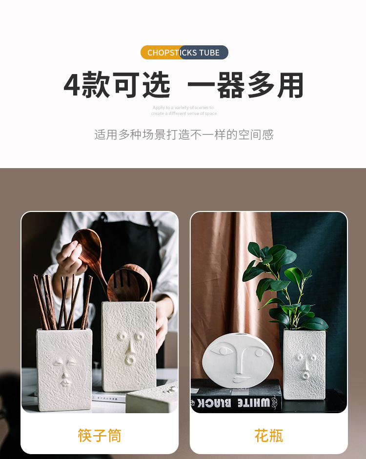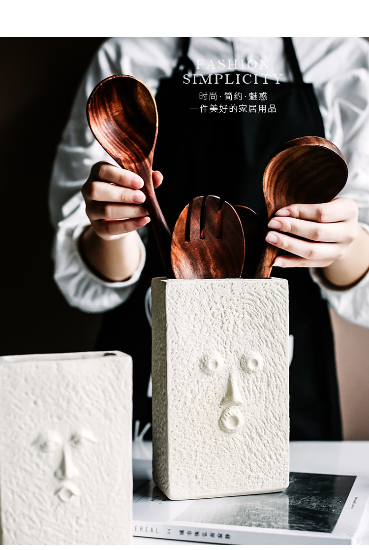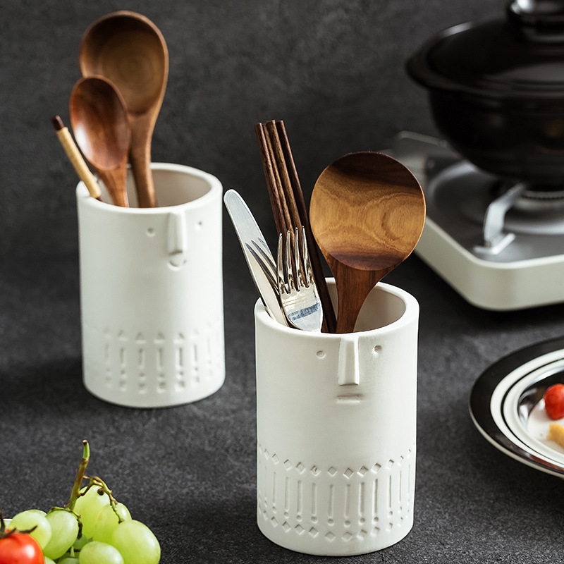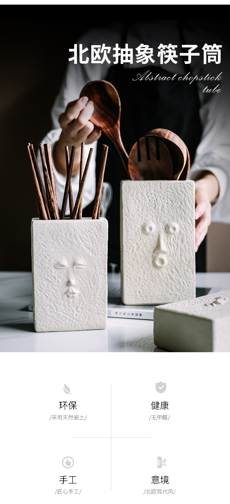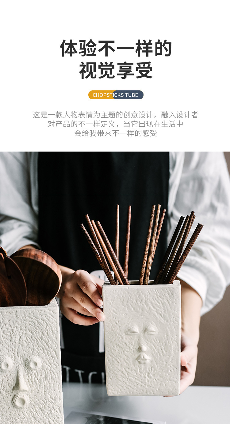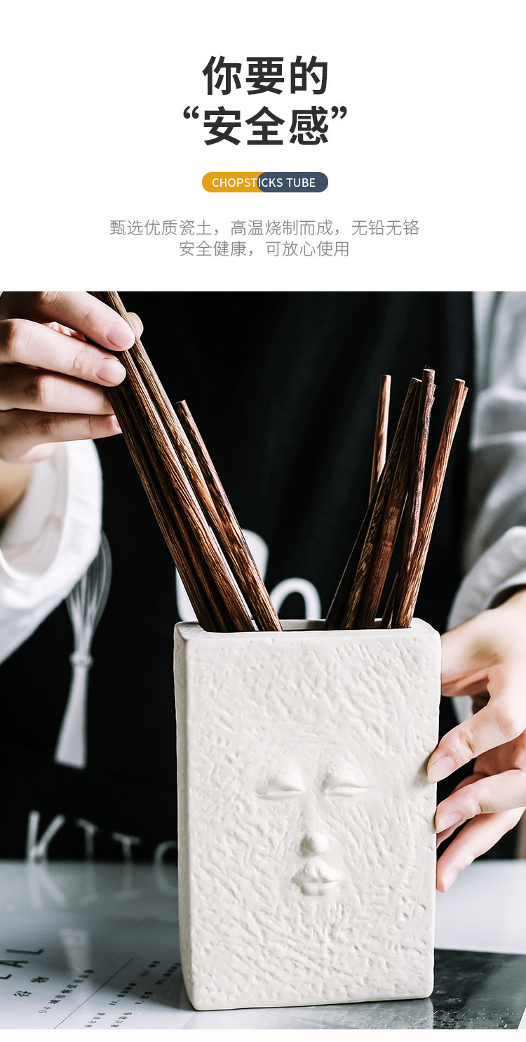 陶磁入り箸立て家庭用多機能北欧デスクキッチン斬新創意表情置物箸籠収納