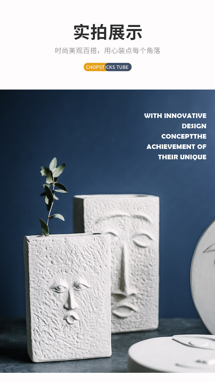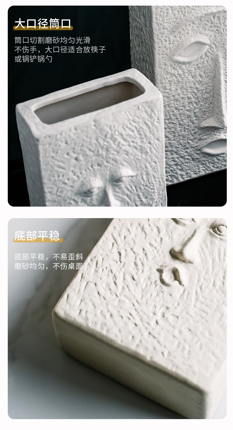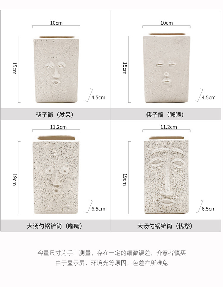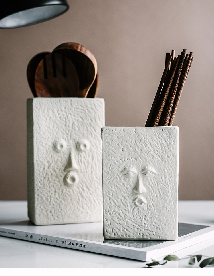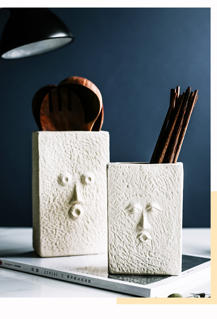 メーカー直売のシンプルな箸立ての棚の軽い豪華な陶磁器の筒の四角形の置物の北欧の創造者の顔の抽象的な収納筒