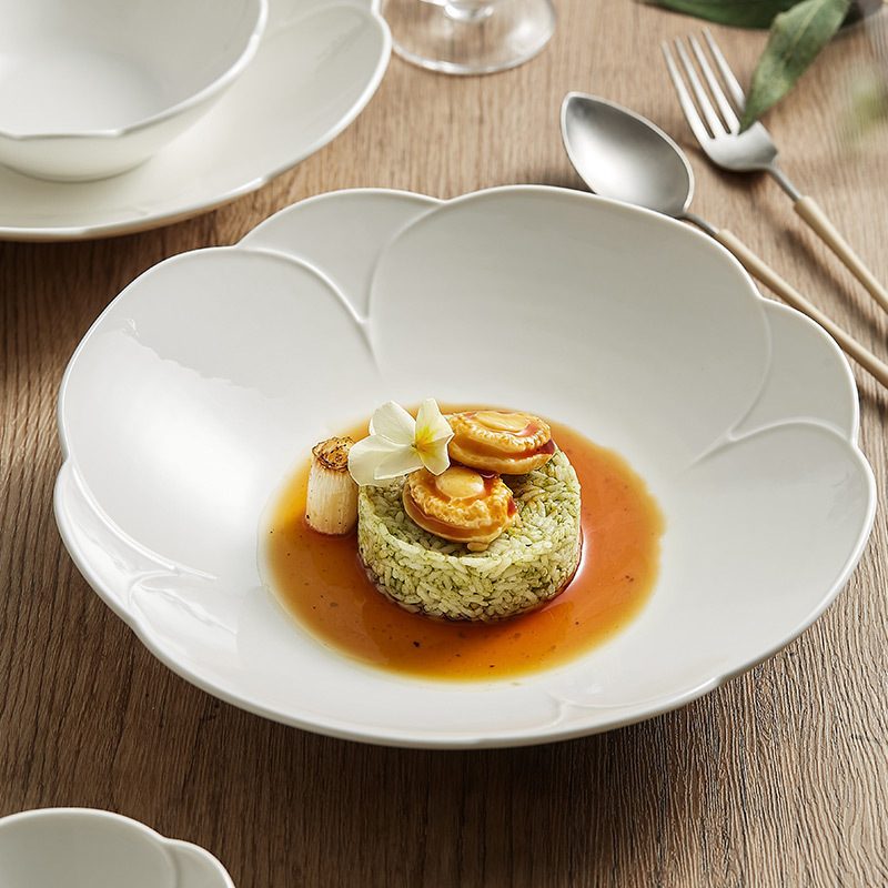 白磁花びら陶器食器家庭用丼スープボウル魚皿高級軽量高級皿ボウルシンプルなヌードルボウル