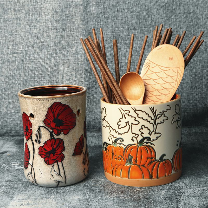 実用的なレトロな陶磁器の箸立ての特色の家庭用レリーフのロットは水の穴の箸の収納筒のクロスボーダーの輸出を持っています。