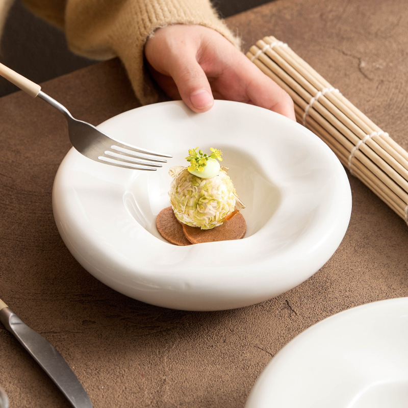白磁二層芸術的意図皿デザート分子料理食器レストランスープボウルセラミック洋食サラダボウル洋食クリエイティブ