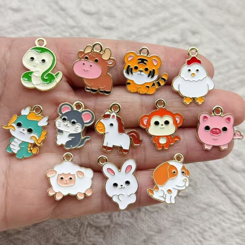DIY饰品配件滴油卡通可爱十二生肖动物ins潮手作材料吊坠挂件配饰