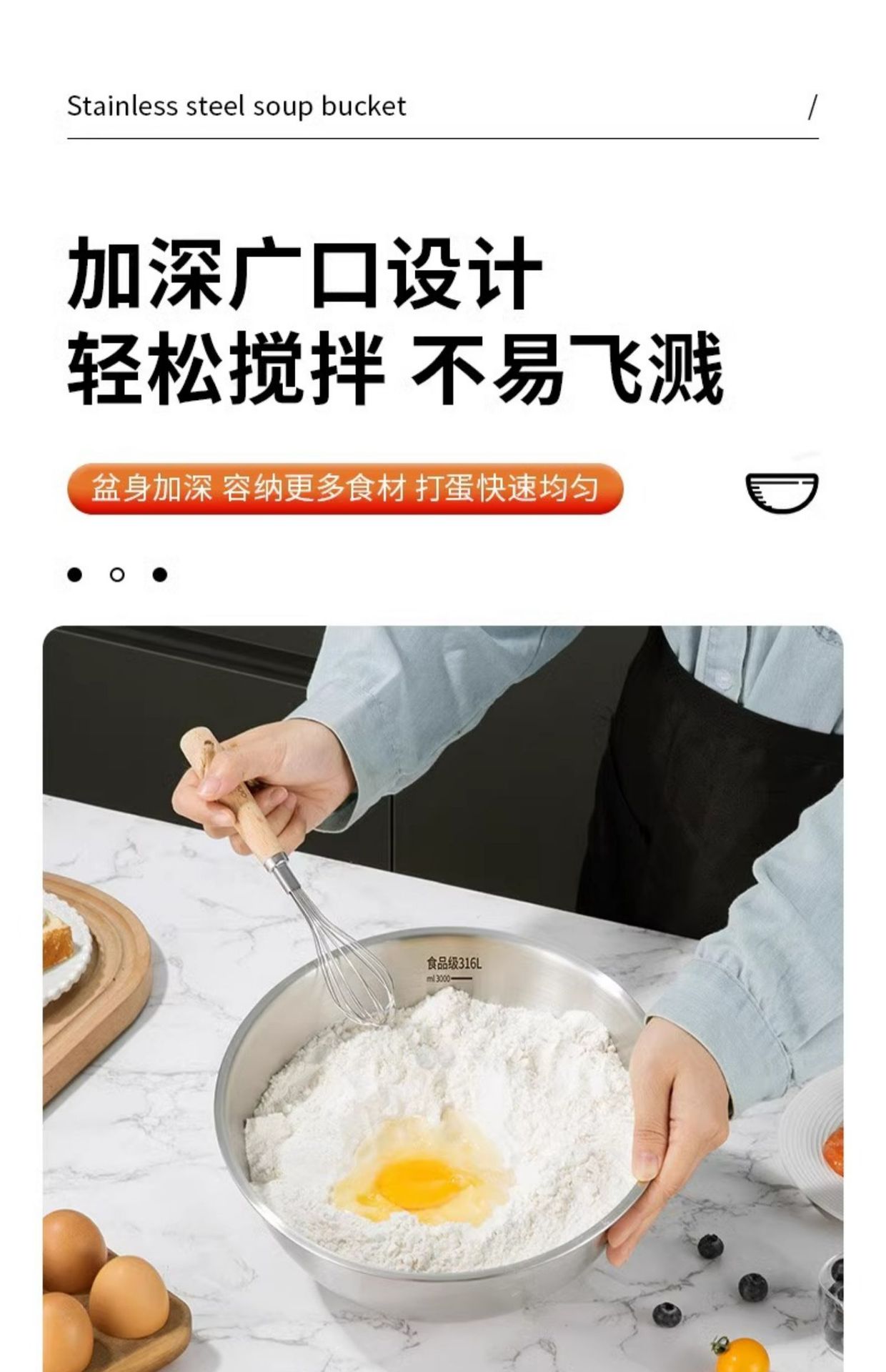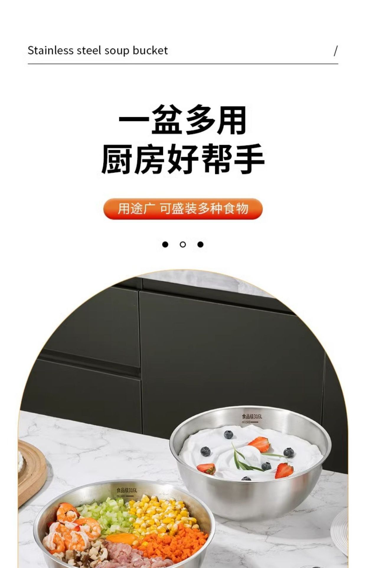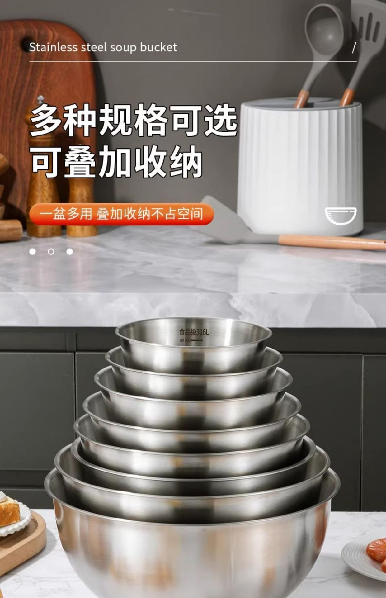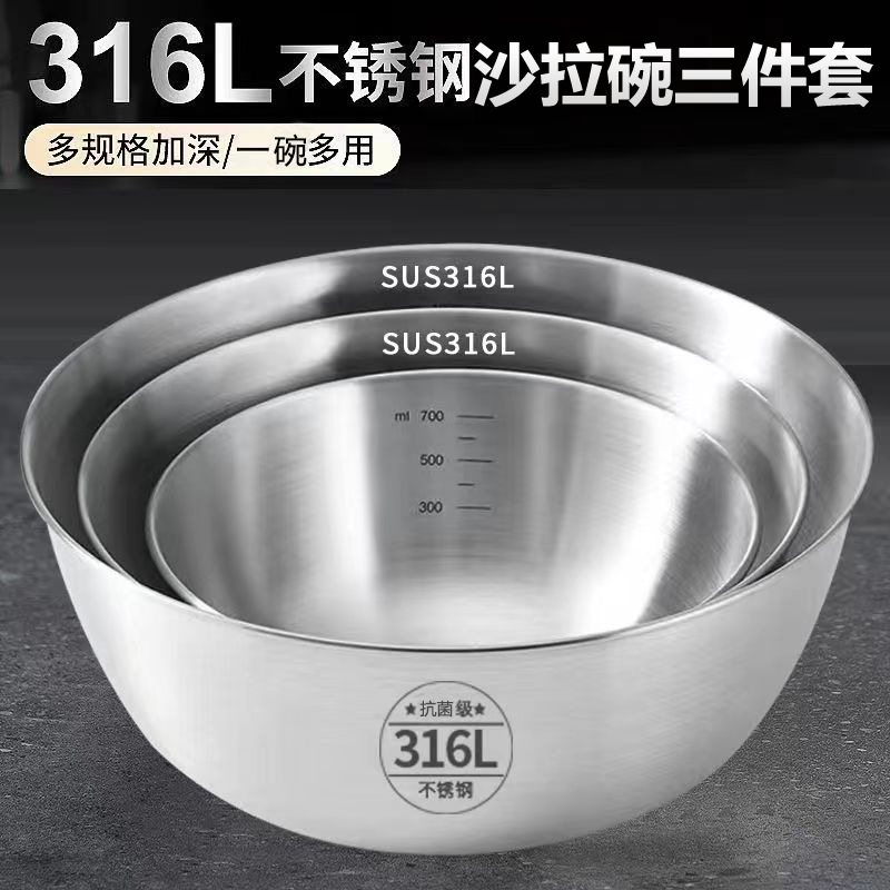 316不锈钢盆沙拉盆家用厨房加厚大号料理食品级打蛋和面水果烘焙