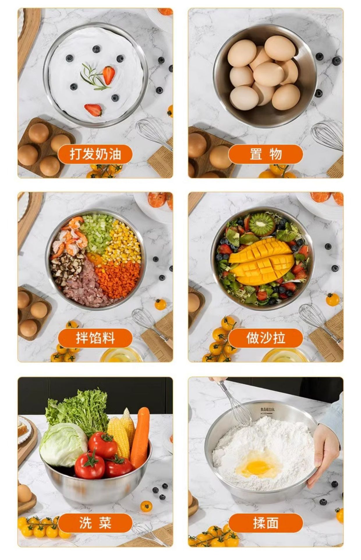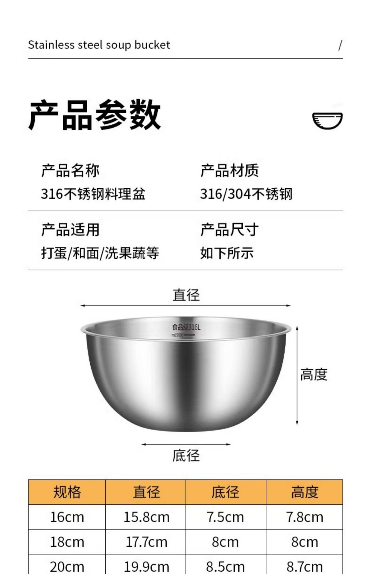 316食品级不锈钢和面盆洗菜打蛋盆家用厨房凉拌沙拉料理盆直边盆