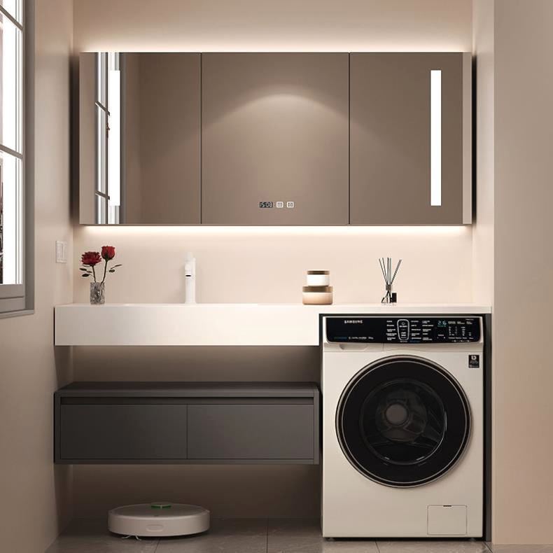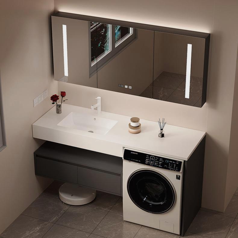 コーリアン一体型洗面器バルコニー洗濯機キャビネット浴室キャビネットロックボードシームレスセラミック洗面台シンプルグレー