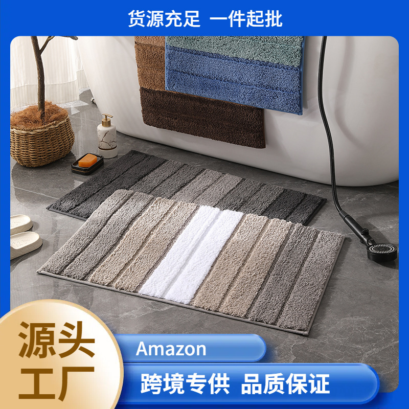 シンプルな筋目の植毛ジャカード吸水マット家庭用浴室ドア滑り止めマット寝室ドアカーペット厚手マット