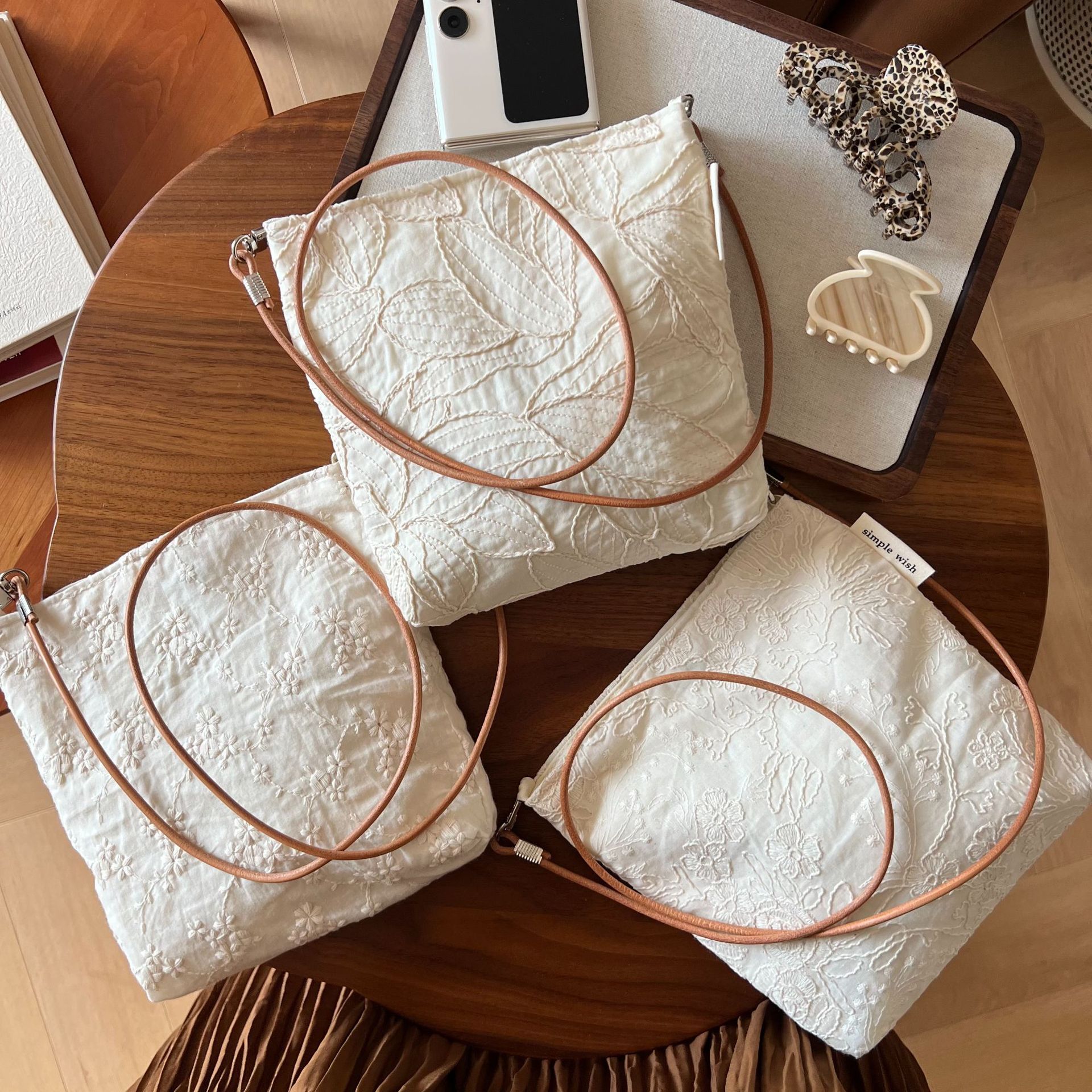 文艺复古法式刺绣蕾丝纱单肩棉布袋