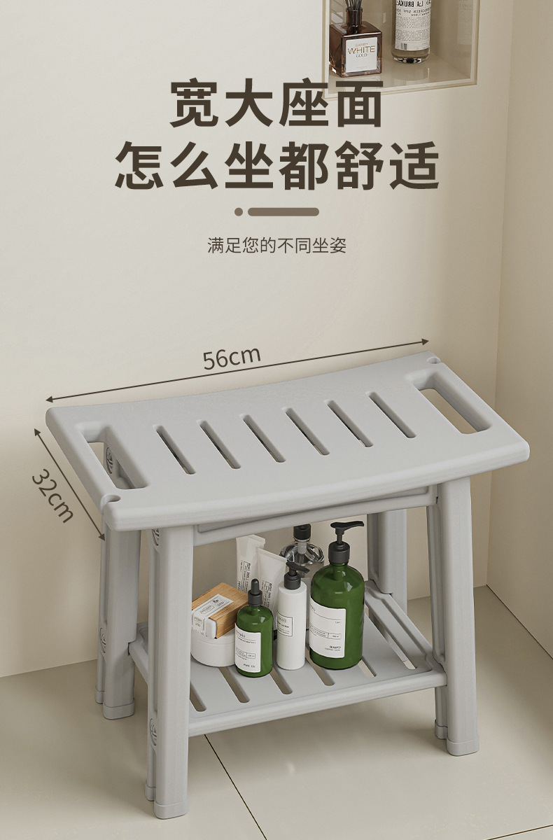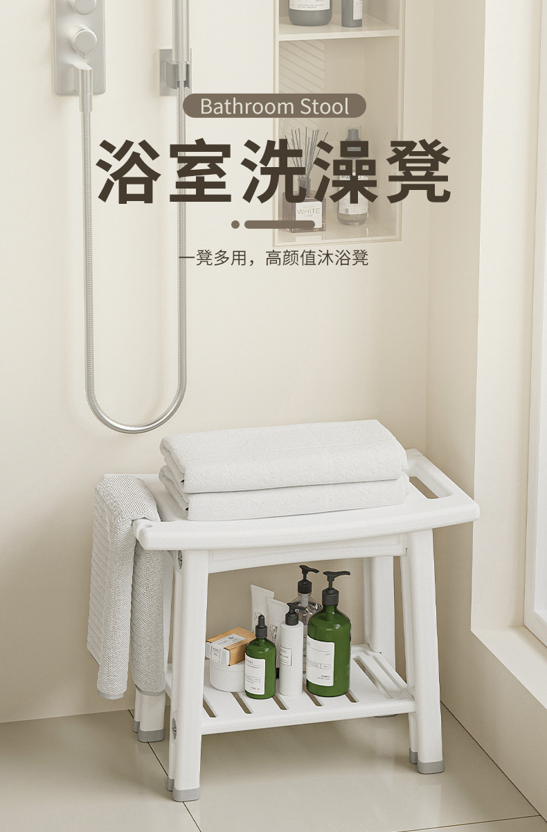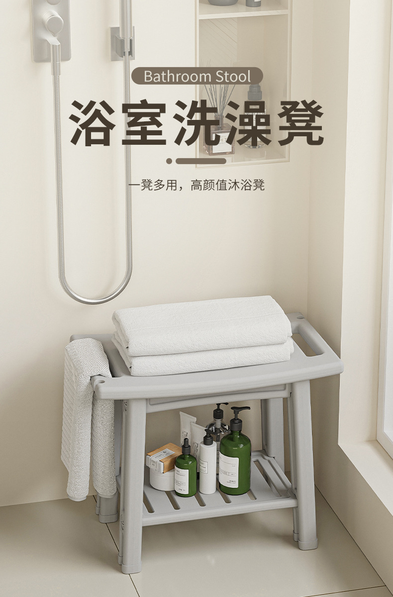 浴室凳卫生间洗澡凳老人孕妇儿童淋浴坐凳收纳凳双层板凳防滑矮凳