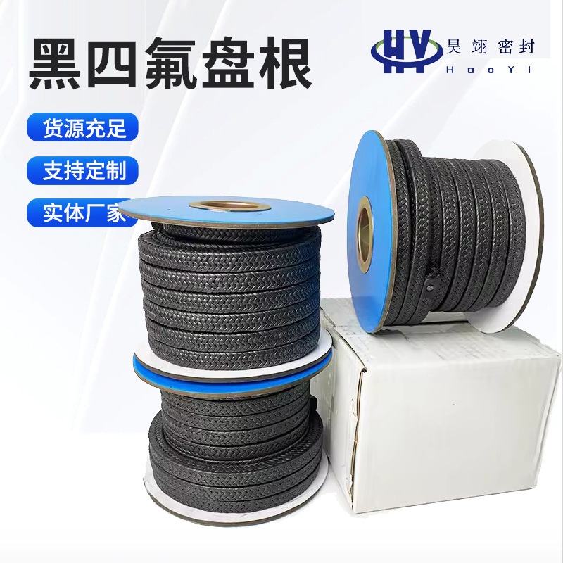 カスタマイズされた PTFE ラフィアテフロン織高圧ウォーターポンプメカニカルバルブシールブラック PTFE ラフィア
