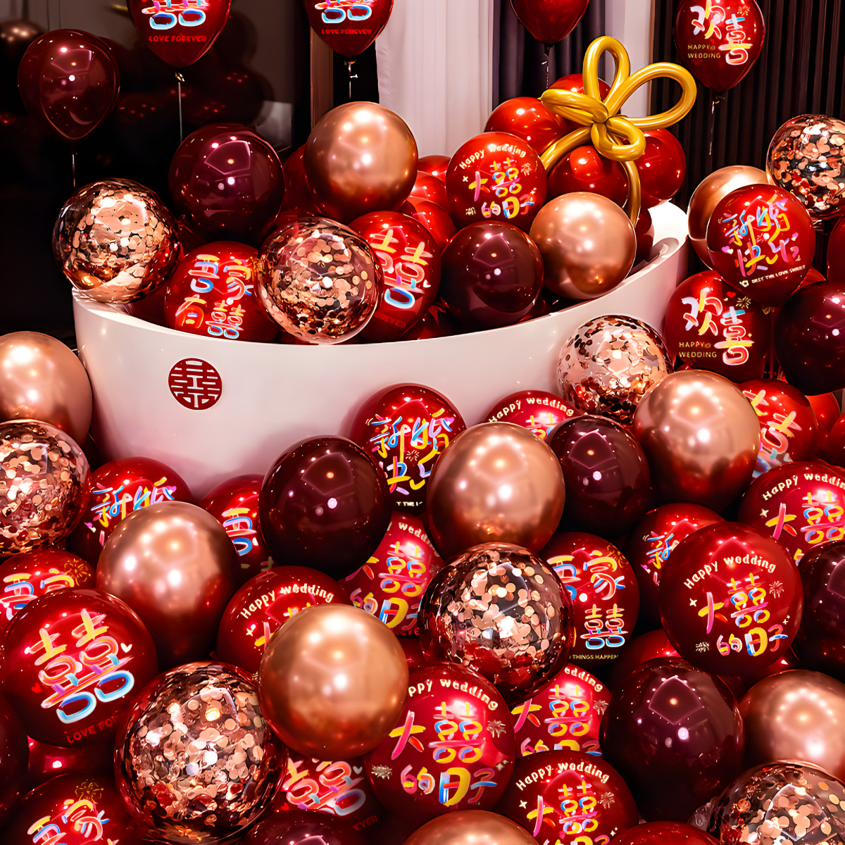 結婚風船は赤いお祝いの雰囲気感を飾って、女性の結婚部屋の寝室の装飾シーンの結婚式セットを飾っています。