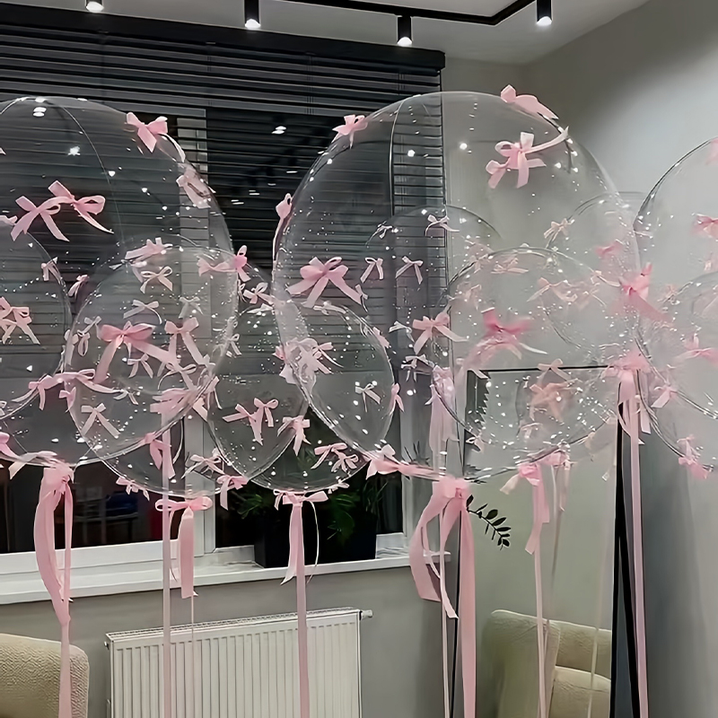 透明蝴蝶结气球布置场景装饰生日派对订婚结婚飘空马卡龙气球