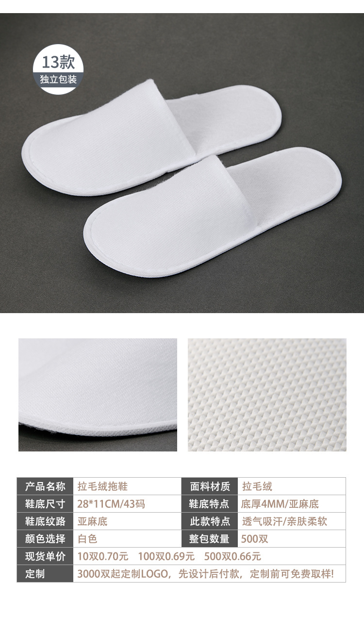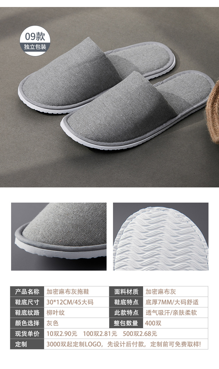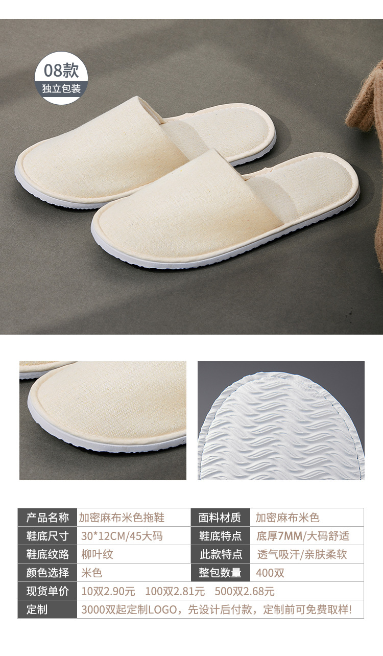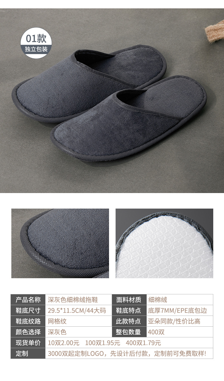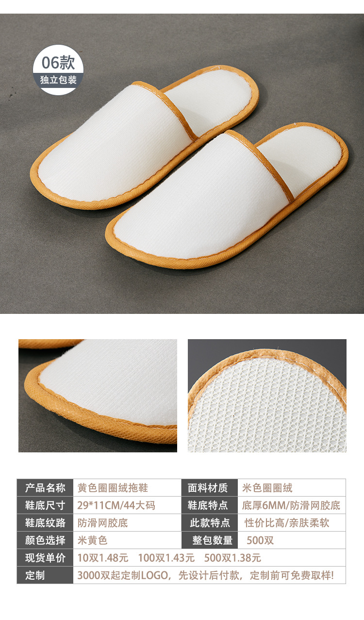 スターホテル、ホテル、B&B、厚みのある家庭用秋と冬の滑り止めおもてなし卸売ロゴ用の使い捨てスリッパ