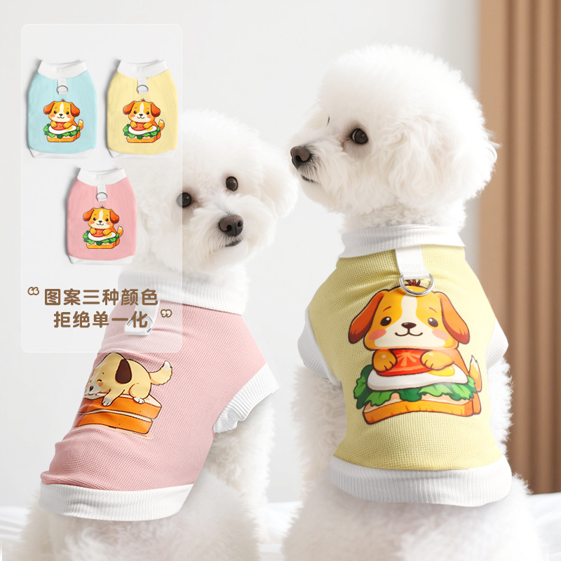 ペット犬服ペット服春夏比熊テディペットベストストラップ24ワッフルプリントtシャツ