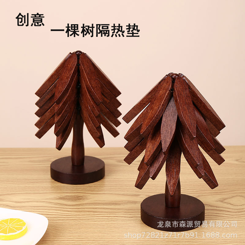 厂家直销餐垫杯垫木质防烫耐热垫餐桌摆件一棵树黑胡桃隔热垫批发