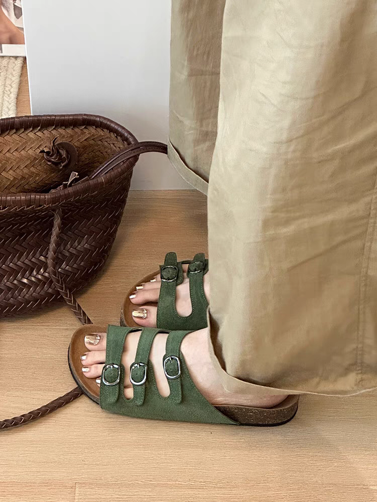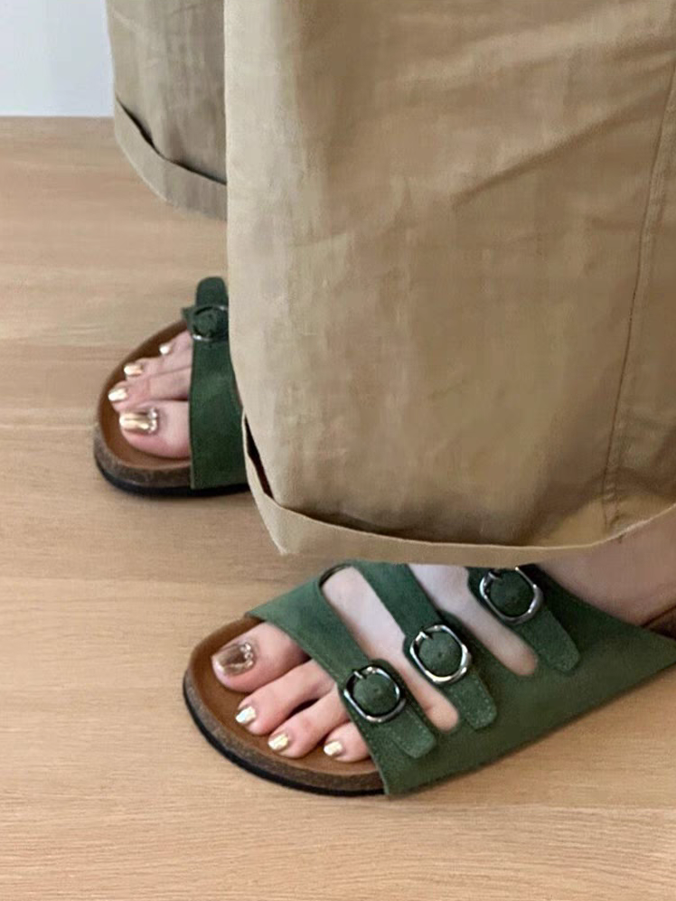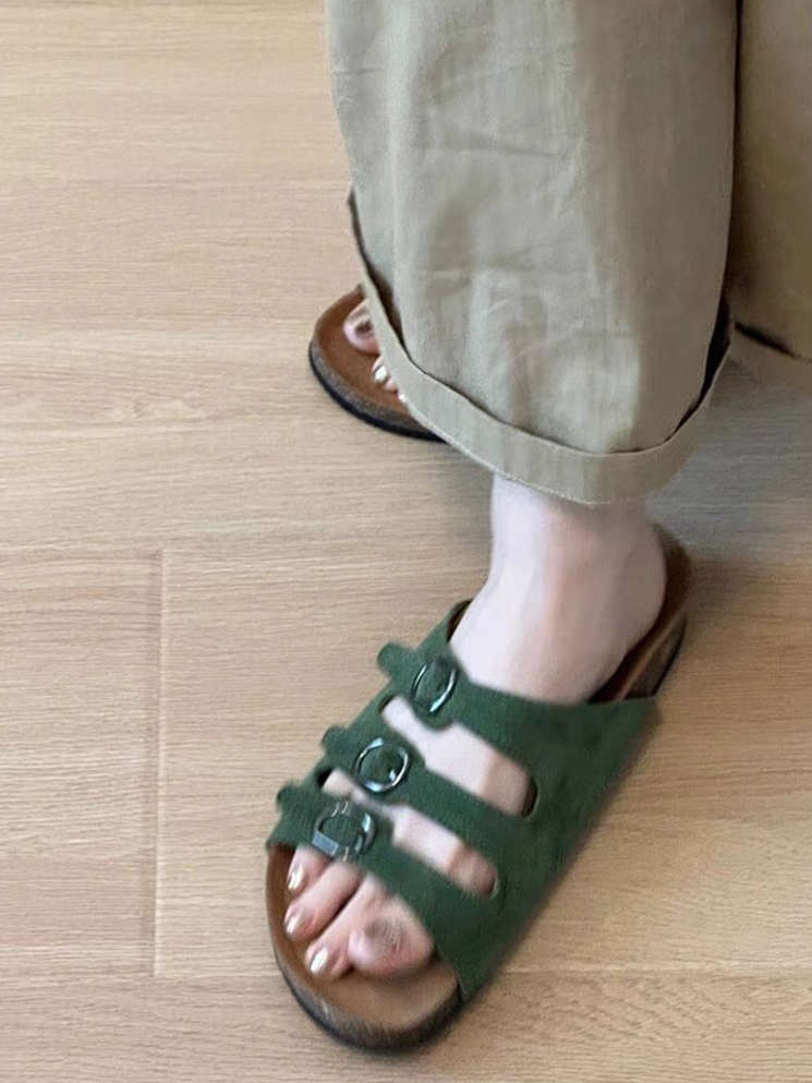 厚底ビーチサンダルビルケンシュトック女性の夏のアウターウェア 2024 新しい多用途コルクソールグリーンカジュアルサンダル
