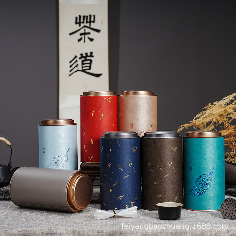 汎用茶葉缶紙缶特価1斤入りジャスミン茶赤黒茶茶葉包装ギフトボックス密封缶紙筒