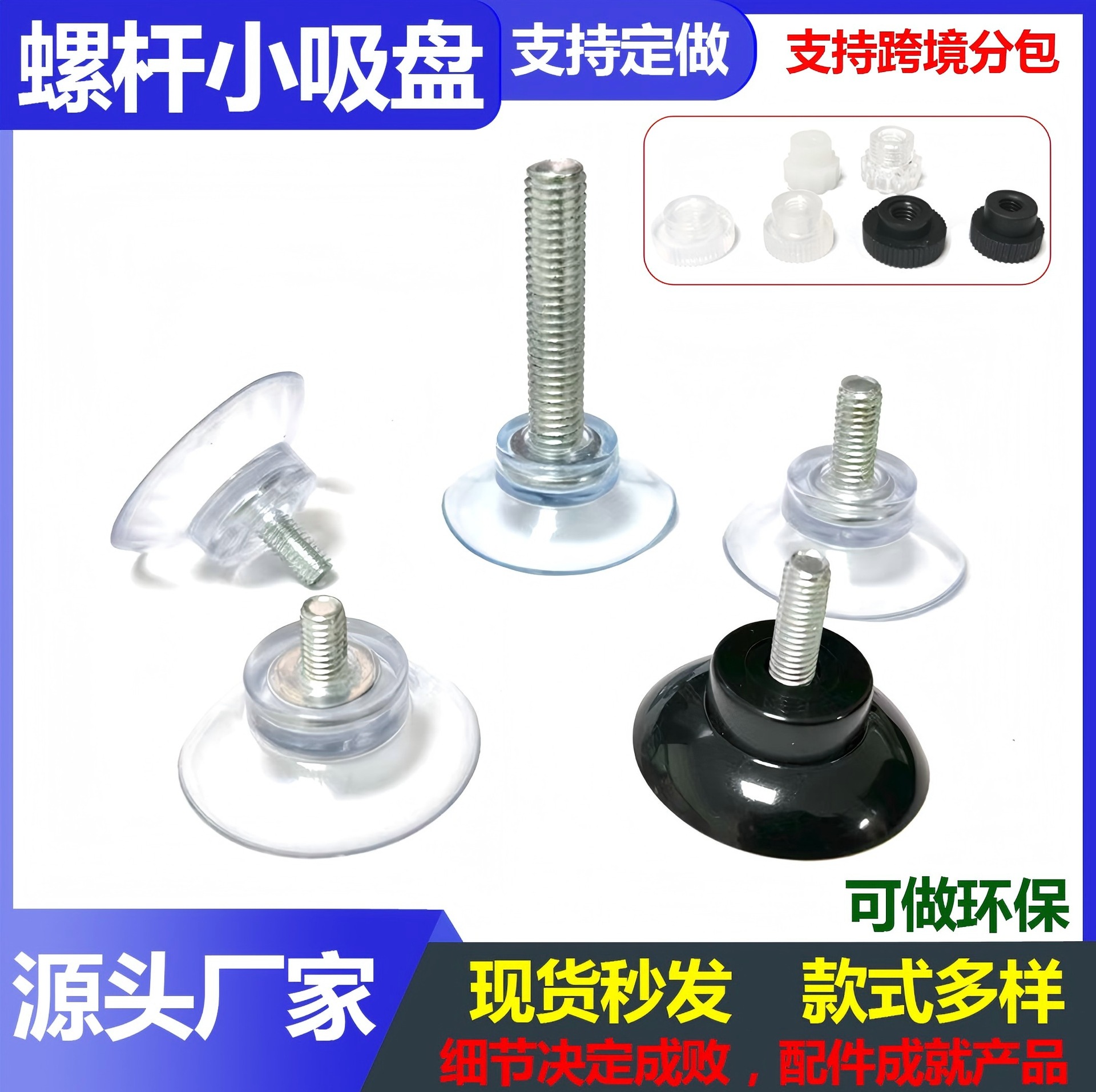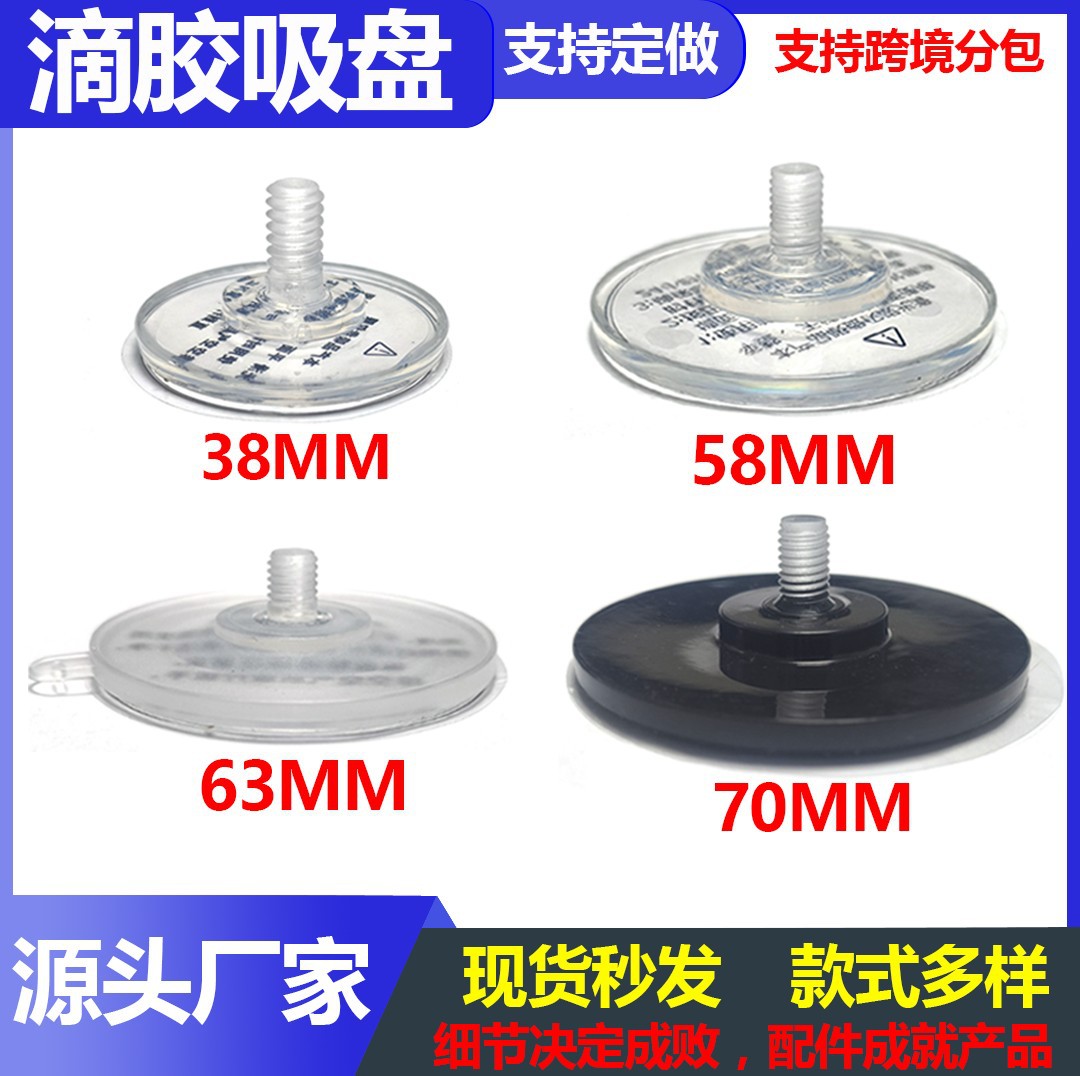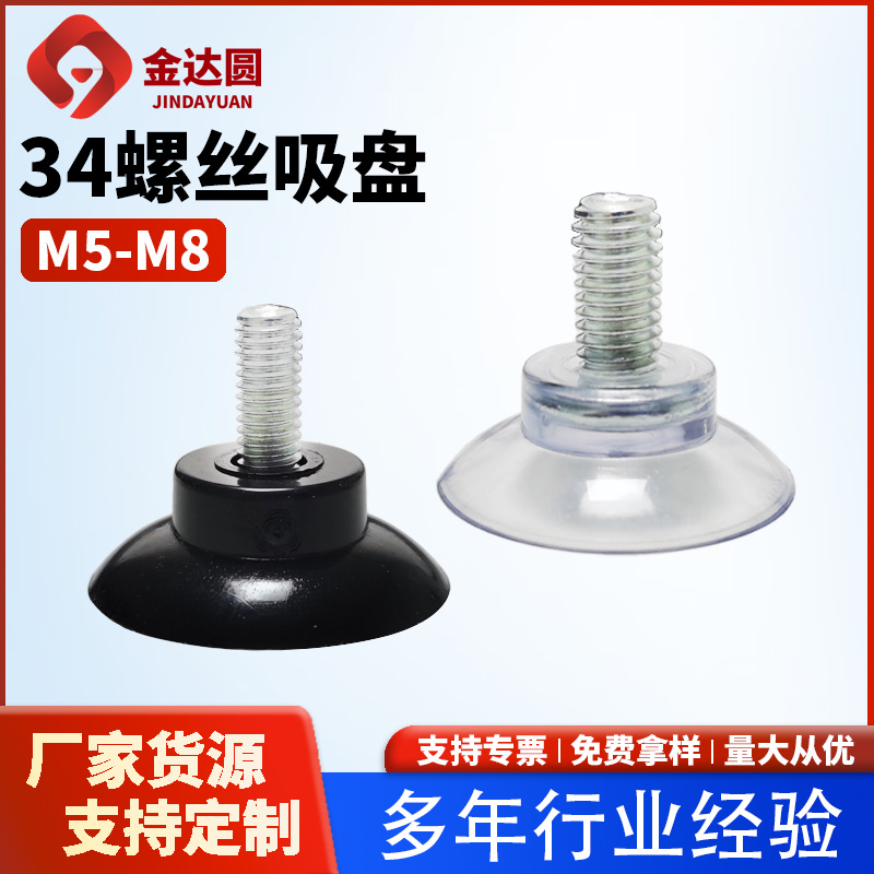 厂家直销34mm螺杆直径吸盘m5m6m8透明黑色pvc环保材质螺丝吸盘